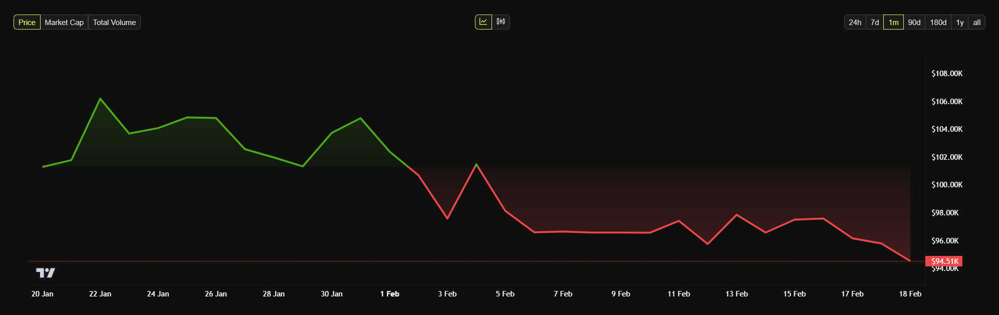 Giá Bitcoin đã có phần dao động trong vài tuần qua, điều này có thể mang lại cơ hội cho Strategy. Sau những biến động lên xuống, giá của nó đang hội tụ ngay dưới mức 100,000 USD. Đây không phải là một sự giảm giá lớn trong bối cảnh chung, nhưng nó vẫn sẽ giúp Strategy có thêm tài sản với cùng một khoản đầu tư.