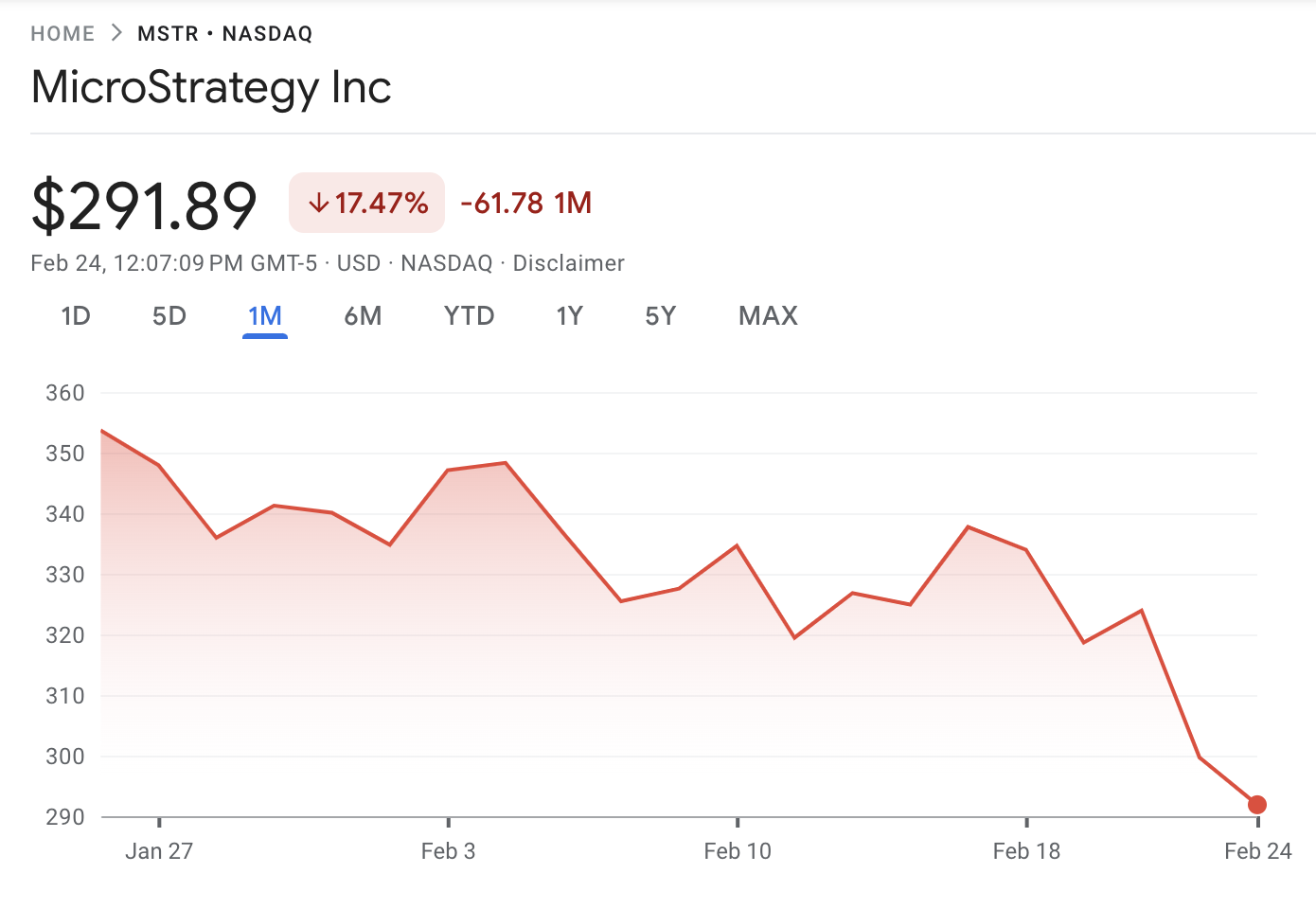 Saylor đã tiếp tục các đợt mua Bitcoin lớn này trong nhiều tháng, nhưng đã có nhiều khoảng dừng đáng kể vào tháng 02. Mặc dù có đợt mua mới nhất, cổ phiếu MSTR của công ty đã hoạt động kém hiệu quả cho đến nay trong năm nay.