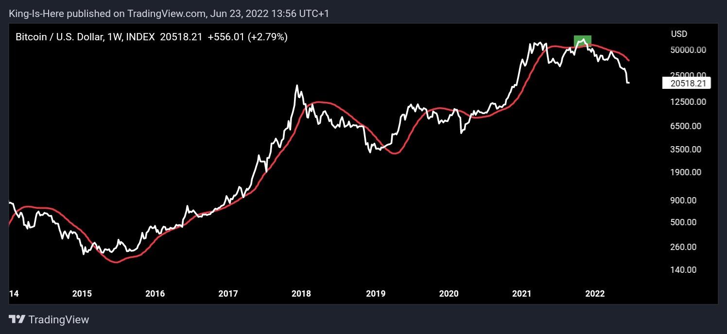 - Có thể thấy, hễ khi nào giá Bitcoin (khung tuần như hình trên) biến động dưới HMA là đều dự báo thị trường bước vào downtrend kéo dài. Và đường này cũng đưa ra tín hiệu mua sớm khi giá Bitcoin khung tuần lần đầu vượt trên HMA trên.