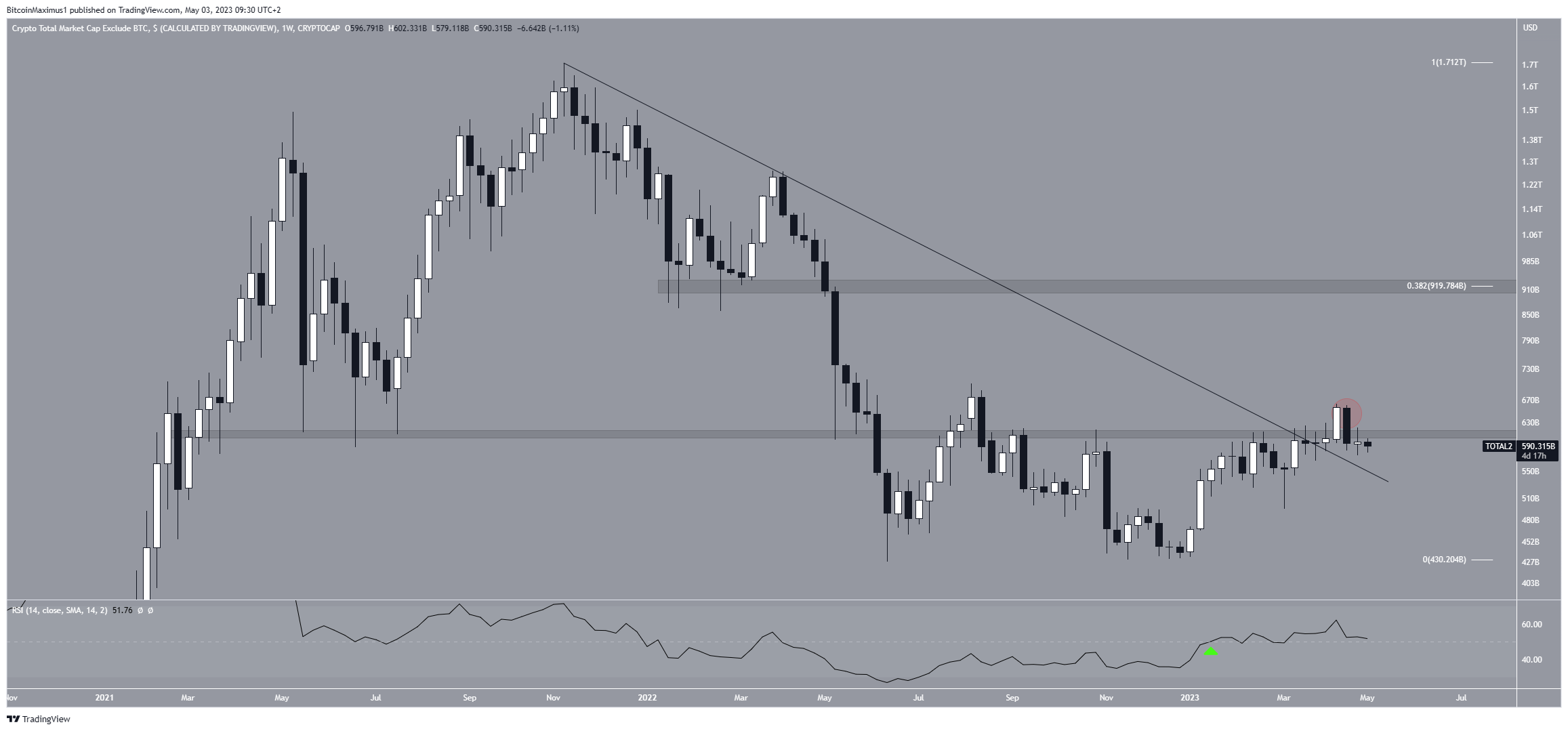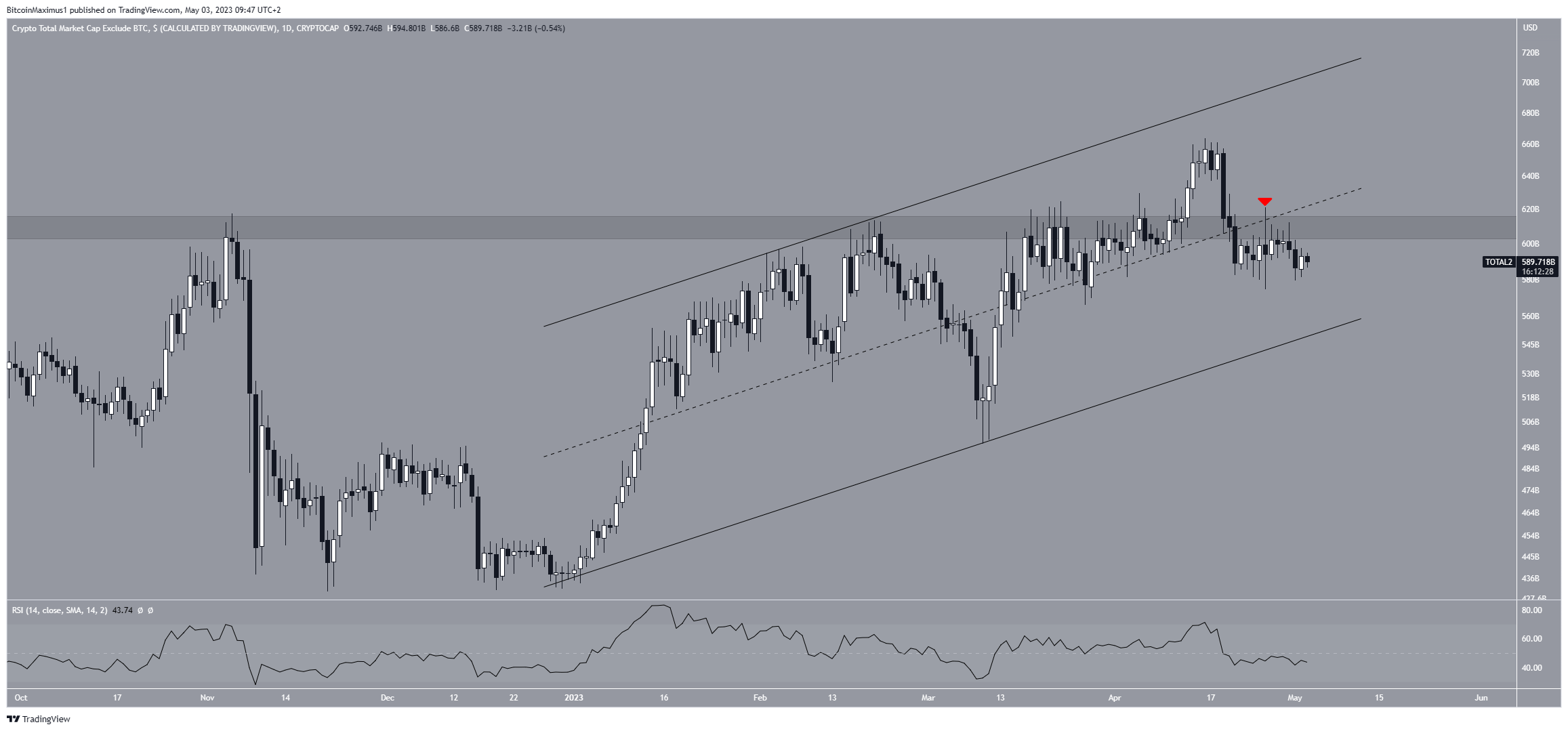 Vốn hoá thị trường của Altcoin đã giảm xuống dưới mức hỗ trợ ngang dài hạn, khiến việc đột phá trước đó có thể trở thành không hợp lệ.