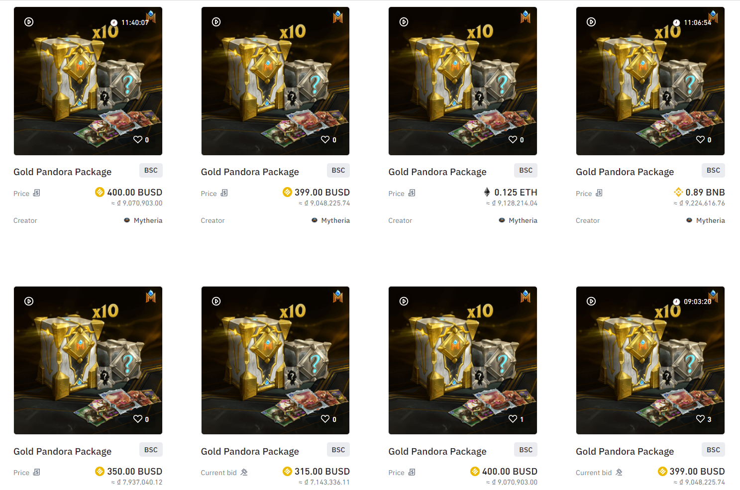 Để nhận thưởng, bạn cần có mặt trong top 20 nhà đầu tư có khối lượng giao cao nhất từ sự kiện Pandora NFT. Hiện tại, nhà đầu tư có thể mua các gói Pandora bằng BUSD hoặc BNB tại đây. Trong các gói NFT chứa các thẻ nhân vật được ngẫu nhiên chọn cấp độ từ Rare trở lên. Đối với gói Pandora vàng, người mua có cơ hội nhận thẻ vật nuôi hoặc ZODIAC.