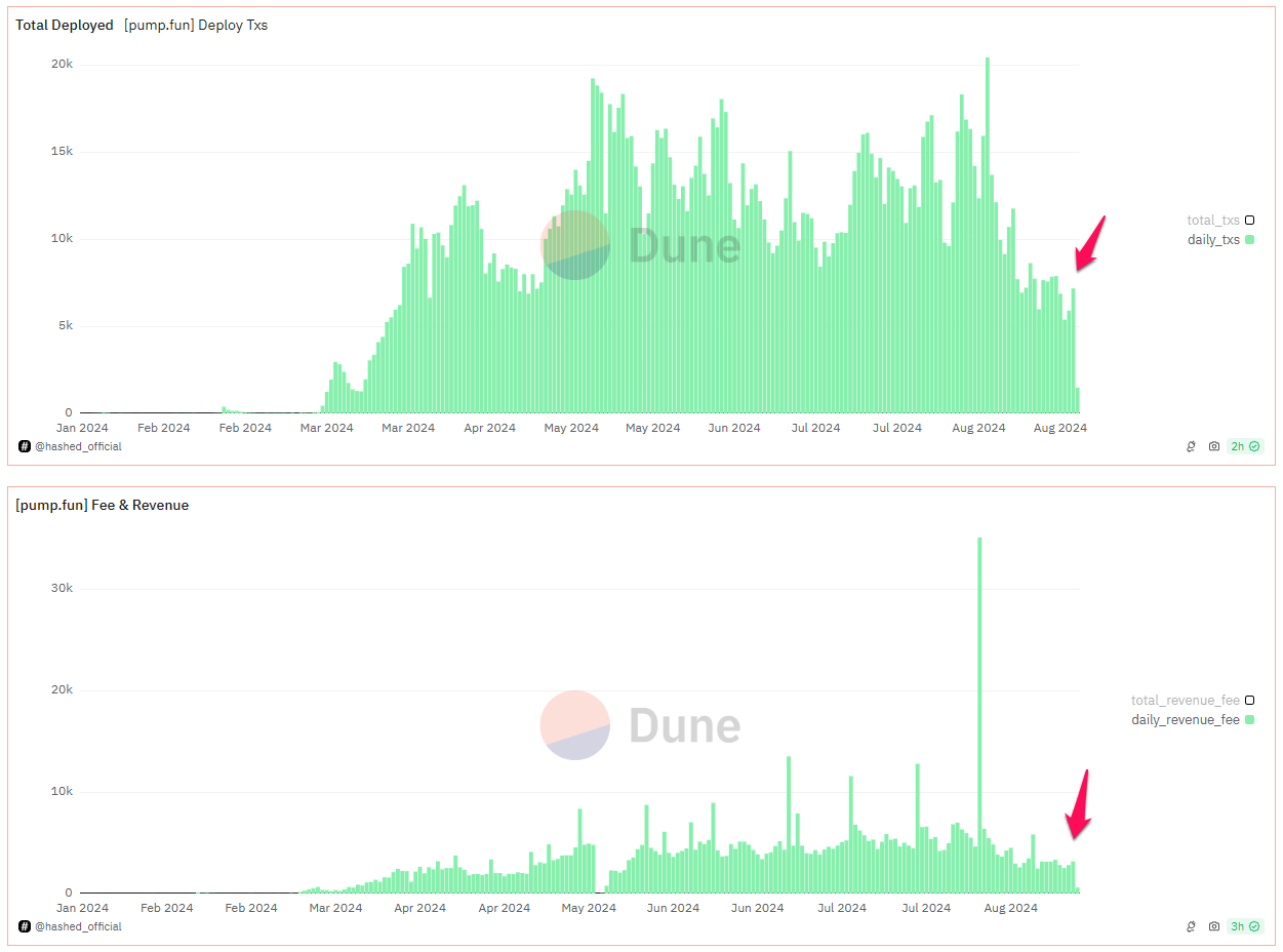 Cùng điểm qua một vào dữ liệu từ Dune, để cung cấp cái nhìn toàn cảnh về nhu cầu tạo meme token trên launchpad này.