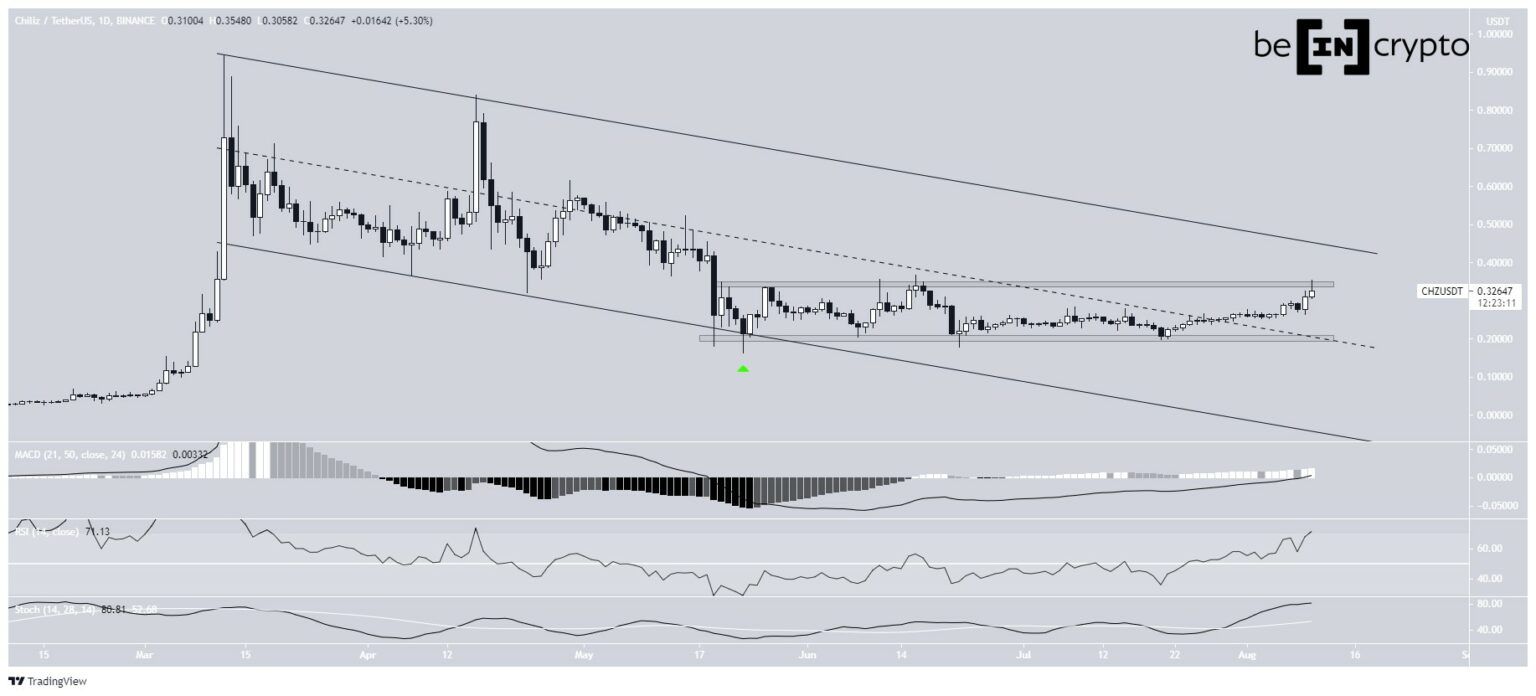 Kể từ đó, CHZ đã giao dịch trong biên độ giá từ $0.20 đến $0.345. Vào ngày 29 tháng 7, CHZ đã lấy lại vùng giữa kênh và đang cố gắng di chuyển trên $0.345.
