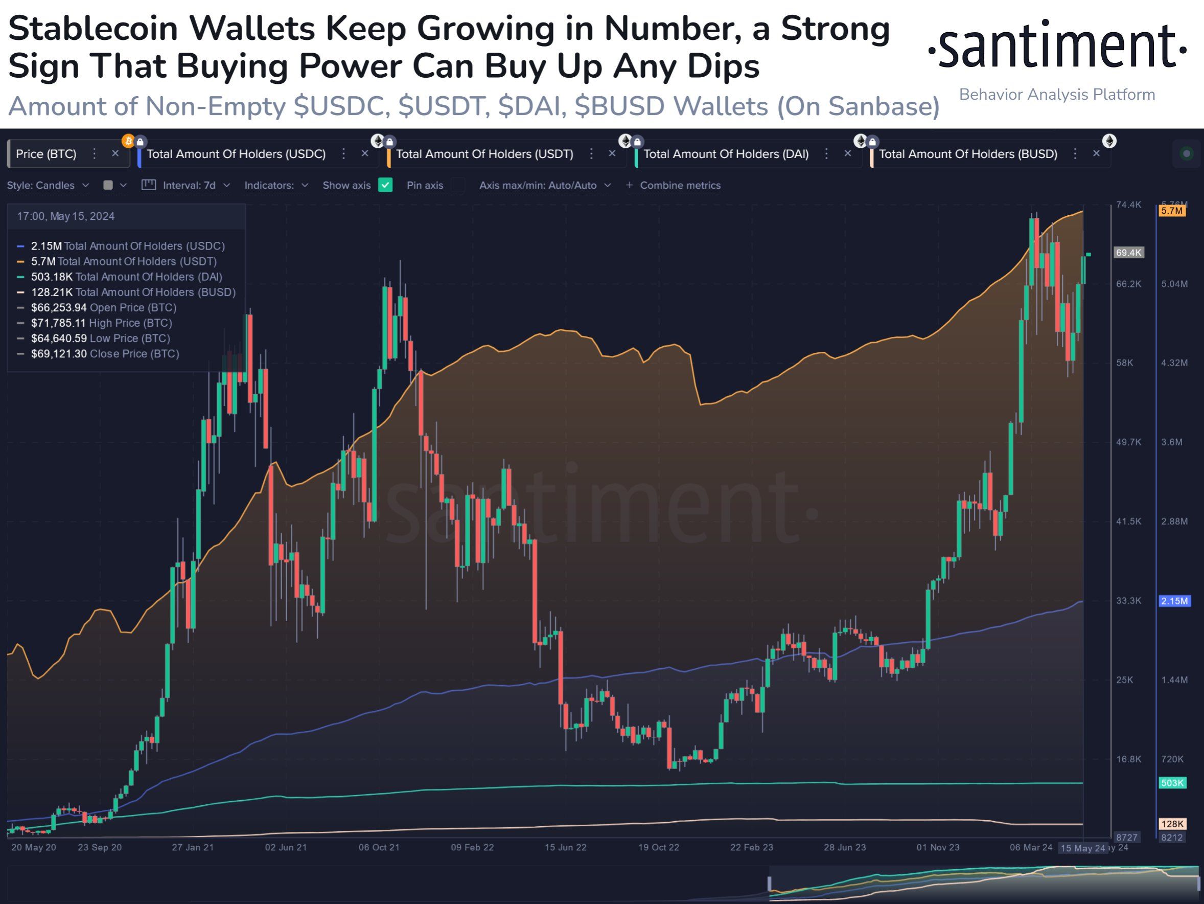 Số lượng ví stablecoin tăng mạnh mẽ trong tháng 5