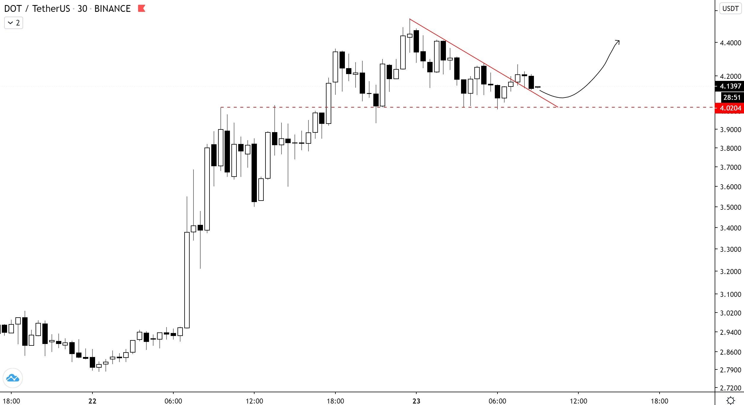 Về cơ bản, Polkadot vẫn có được một nền tảng hỗ trợ chắc chắn. Nhà phân tích @TeddyCleps dưới góc nhìn kỹ thuật cho tằng DOT vẫn còn khá mạnh khi vẫn đang được giao dịch trên một ngưỡng hỗ trợ cứng.