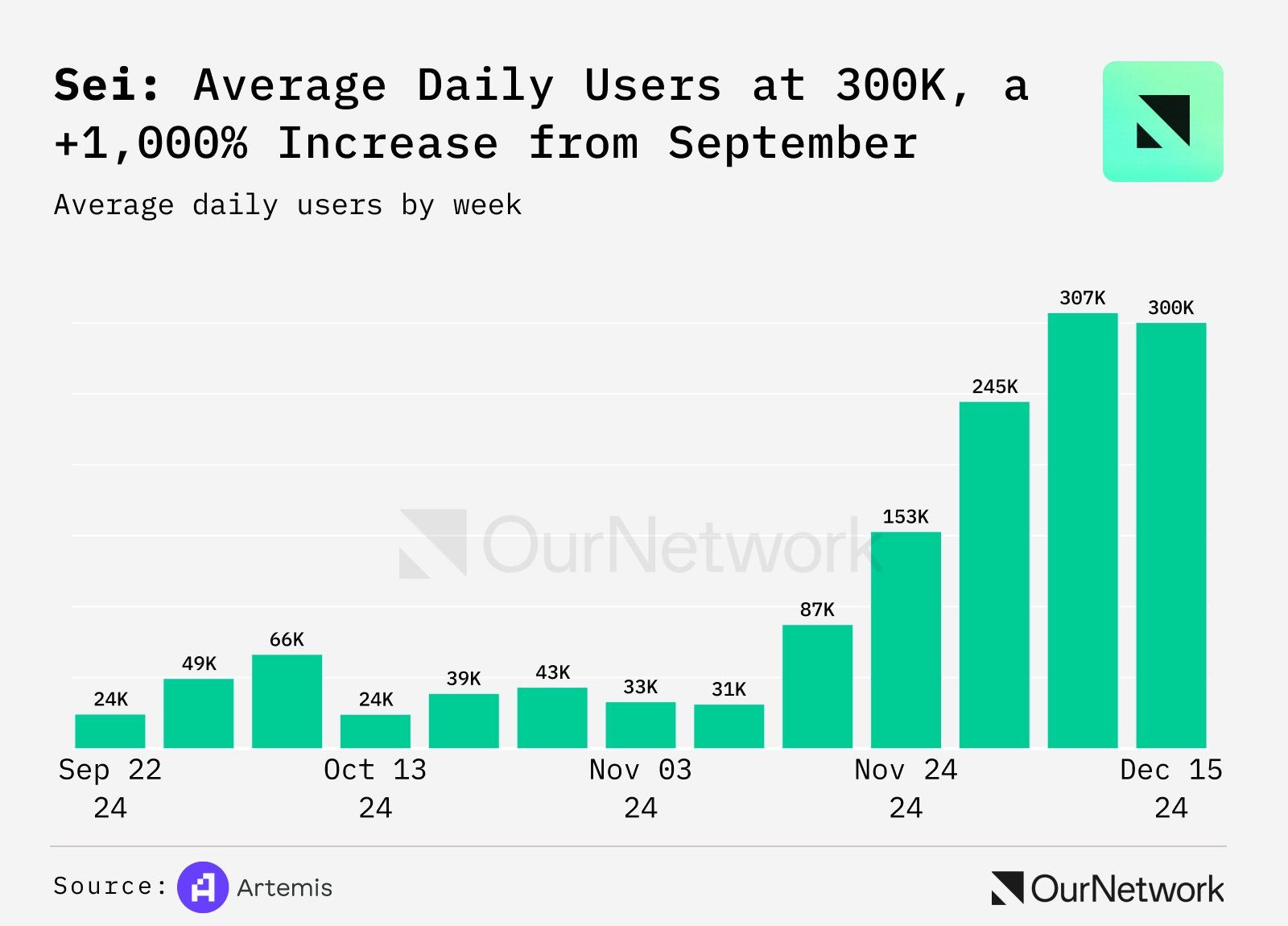 Báo cáo gần đây của OutNetwork cho thấy lượng người dùng hằng ngày trên SEI đã tăng hơn gấp 10 lần trong ba tháng qua. Hiện mạng SEI tháng 12 đạt hơn 300,000 người dùng mỗi ngày. Con số này của tháng 9 là dưới 30,000 người dùng.