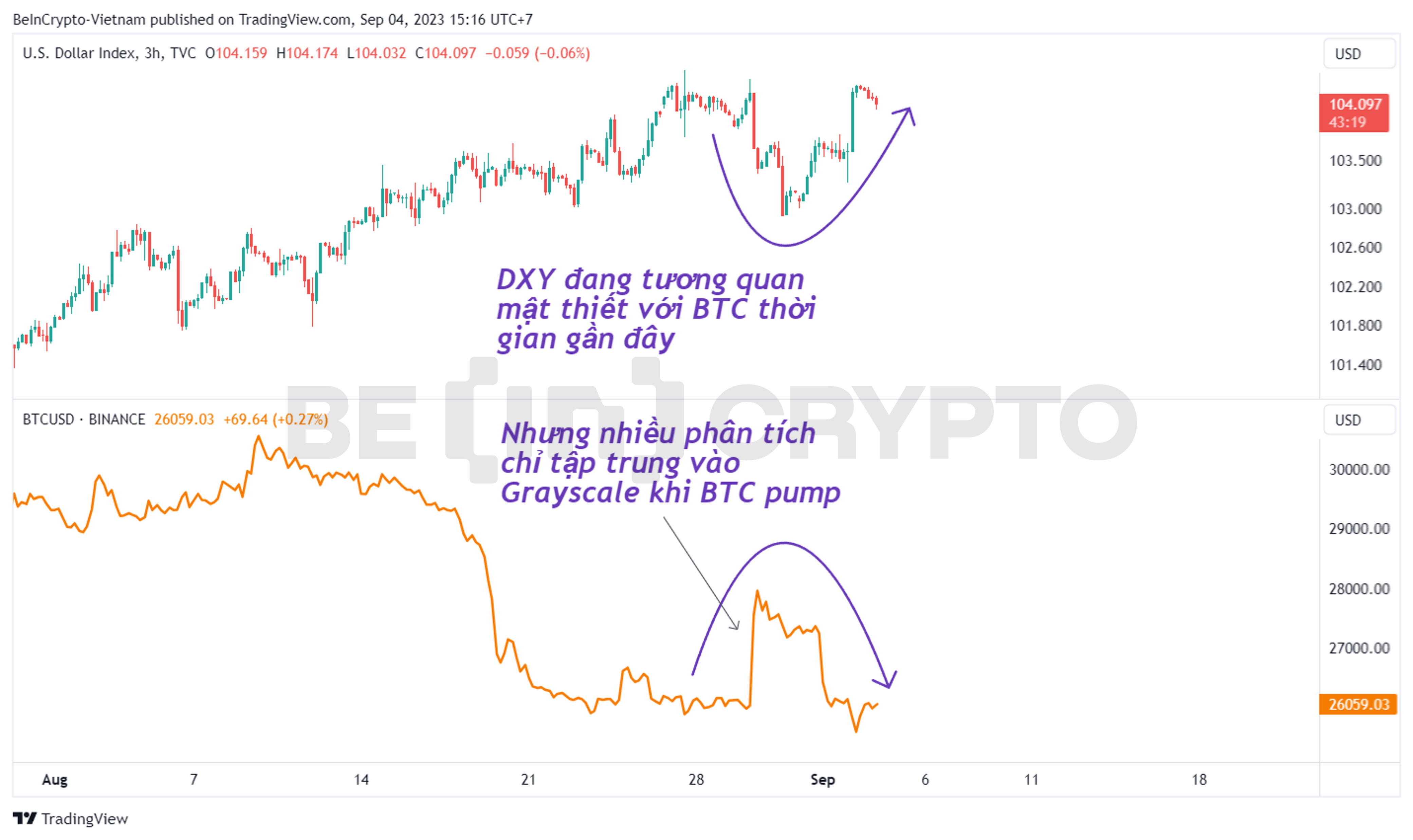 Rất nhiều phân tích lý giải động thái Bitcoin pump mạnh hồi 29/8 vừa qua là vì tin tức Grayscale thắng kiện SEC. Đà tăng này không chỉ của BTC, mà của toàn bộ vốn hóa thị trường Crypto. Nếu chỉ tập trung vào Grayscale sẽ khiến cho việc đánh giá yếu tố tác động lên giá BTC thiếu khách quan.
