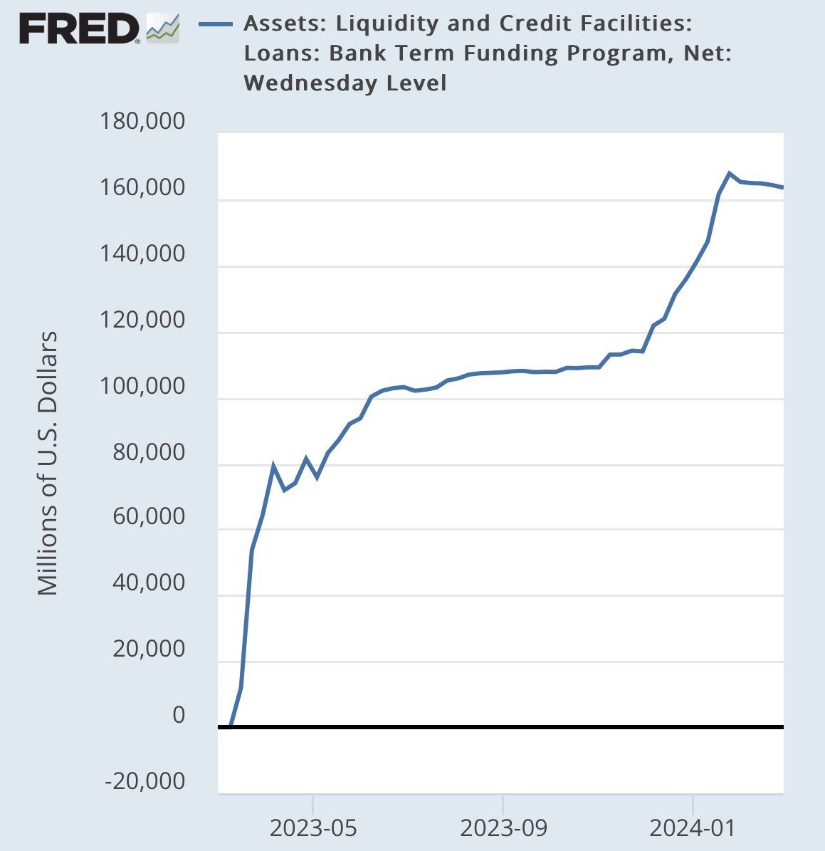 SponsoredTính đến tháng 3/2024, tổng dư nợ của chương trình này đã tăng vượt 160 tỷ USD. Các ngân hàng thay vì đi vay thông qua Discount Window với mức lãi suất 5.5% thì họ tận dụng BTFP để được vay với mức 4.89%. Thời hạn của chương trình này là đến ngày 11/3/2024, tức tròn một năm nó được khởi động. Điều này mở ra nguy cơ rủi ro thiếu hụt thanh khoản trong tháng 3 này.