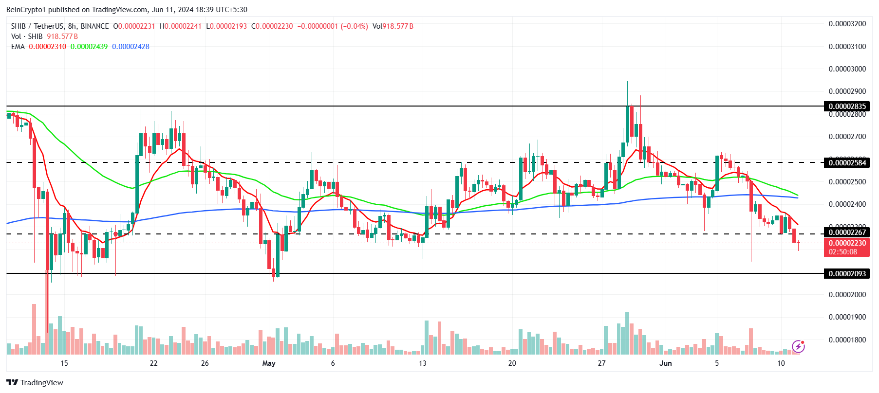 Giá của Shiba Inu (SHIB) tiếp tục giảm do điều kiện thị trường chung đang trong xu hướng giảm. Sự gia tăng bán ra và sự sụt giảm niềm tin của các nhà đầu tư có thể sẽ thúc đẩy sự điều chỉnh này.