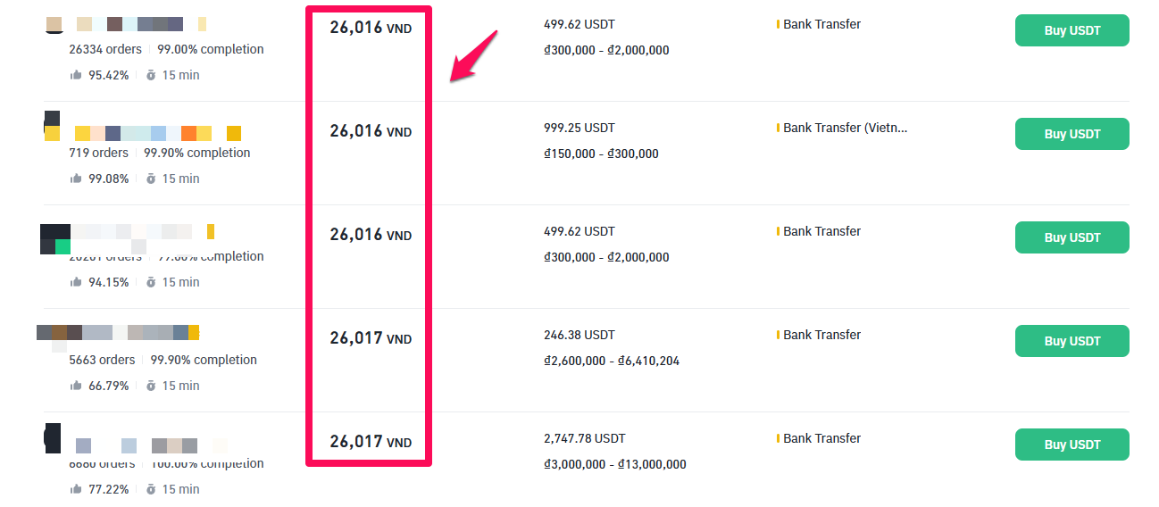 SponsoredHôm nay, giá USDT/VND trên Binance P2P và Remitano quay trở lại trên 26,000 VND. Thực tế, những ngày gần đây khi giá BTC điều chỉnh, giá USDT/VND cũng đã liên tục duy trì ở mức cao của nhiều tháng qua, khoảng 25,500 VND – 25,800 VND. Khi BTC giảm về dưới 60,000 USD, giá USDT/VND tăng thêm phản ánh nhu cầu nắm giữ USDT cho tâm lý sẵn sàng mua.