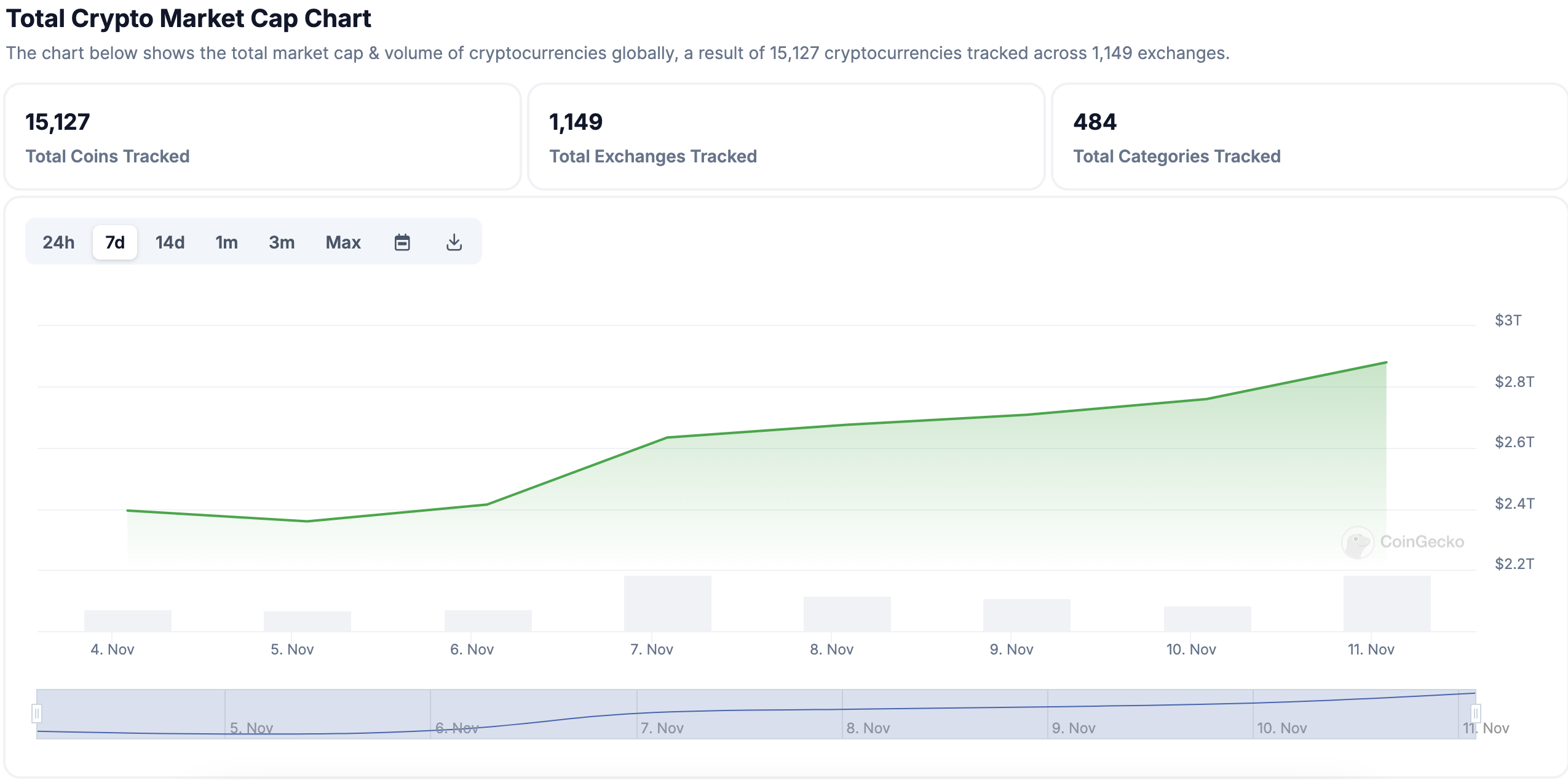 Sự tăng trưởng này đã tạo ra hiệu ứng domino đối với thị trường tiền điện tử rộng lớn hơn. Dữ liệu từ CoinGecko cho thấy vốn hóa thị trường tiền điện tử toàn cầu cũng đã tăng, đạt mức 2.9 nghìn tỷ USD — mức cao nhất từ tháng 11/2021. Tổng khối lượng giao dịch tiền điện tử hiện tại là 296 tỷ USD, cho thấy sự quan tâm tăng từ cả nhà đầu tư nhỏ lẻ và tổ chức.