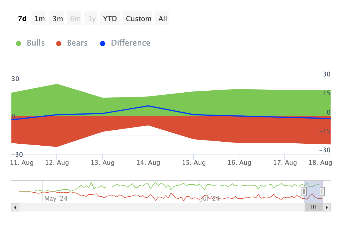SponsoredHơn nữa, phân tích on-chain cũng cho thấy không chỉ nhà đầu tư nhỏ lẻ mới bán NOT. Chỉ số Bulls và Bears cho thấy có nhiều người bán hơn người mua, báo hiệu hoạt động bán ra tăng lên. Trong bối cảnh này, bulls đại diện cho các địa chỉ đã mua 1% tổng khối lượng giao dịch, trong khi bears là những người bán 1% khối lượng. Nếu xu hướng này tiếp tục, Notcoin có thể sẽ khó phục hồi từ mức giảm 30%.