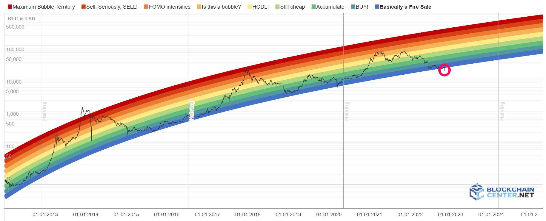 Mô hình kỹ thuật Bitcoin Rainbow mới tháng trước đã bổ sung một dải màu mới để phù hợp với dữ liệu giá mới.