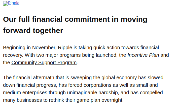 Một email giả mạo có liên quan đến trò lừa đảo này cũng đã được lưu thông trong số những người sử dụng, theo như một nhà đầu tư và là ngưởi ủng hộ XRP có tài khoản Twitter là @whatxrpdid. Thực tế thì đây cũng là người đã phát hiện ra trò lừa đảo này và sau đó đã chia sẻ một bức ảnh chụp màn hình của một email với nội dung Ripple sẽ công bố 2 chương trình cho cộng đồng trong tháng 11.