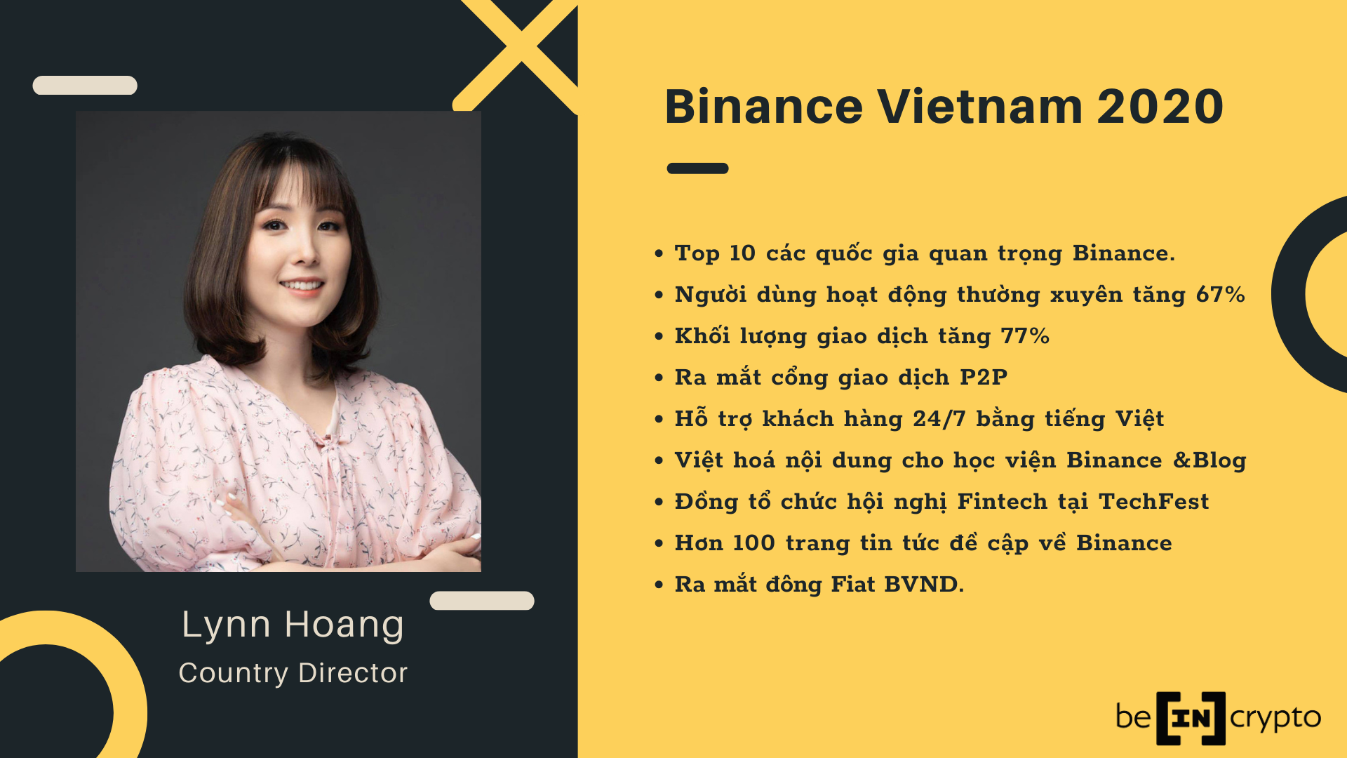 Sự phát triển mạnh mẽ của Binance tại Việt Nam là một tín hiệu tích cực. Dĩ nhiên để tạo được những thành công đó không thể thiếu những “anh hùng thầm lặng”. Trong số đó, Lynn Hoàng, Country Director của Binance, là người mà BeInCrypto rất ấn tượng.
