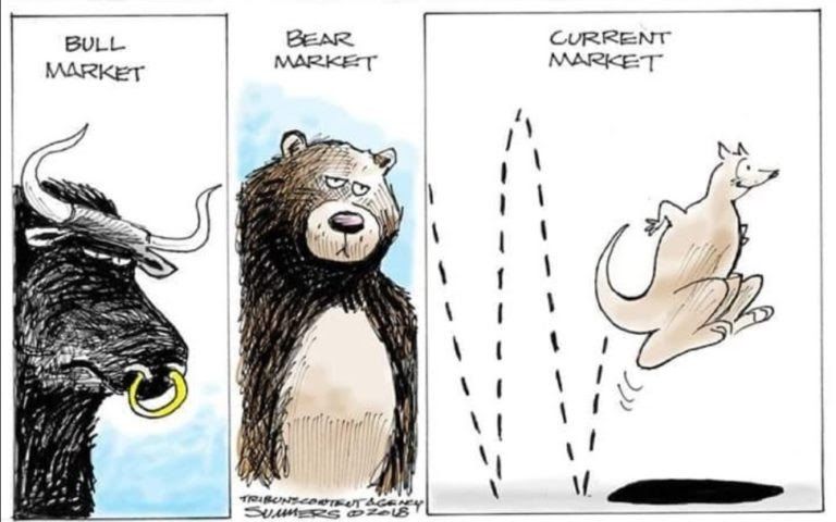 Thị trường đi ngang vẫn là một trong ba xu hướng chính của thị trường. Đi ngang không có nghĩa là không biến động, nhưng là biến động trong biên độ hẹp hơn trước đó trong một thời gian dài đáng kể. Và giá không thể phá đỉnh trước đó cũng như đáy trước đó. Đôi khi người ta gọi đó là thị trường Kangaroo. Vì liên tưởng đến hình ảnh nhảy “tưng tưng” của con vật này.