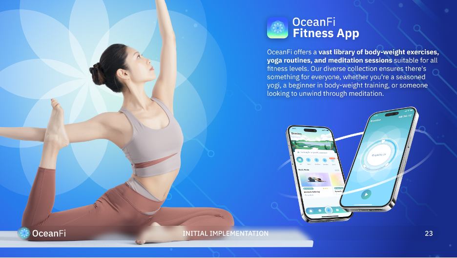 - Mở rộng bài tập: OceanFi đặt mục tiêu đa dạng hóa nội dung thể dục, cung cấp các thói quen tập luyện khác nhau để phục vụ các cấp độ và sở thích thể dục khác nhau của người dùng.