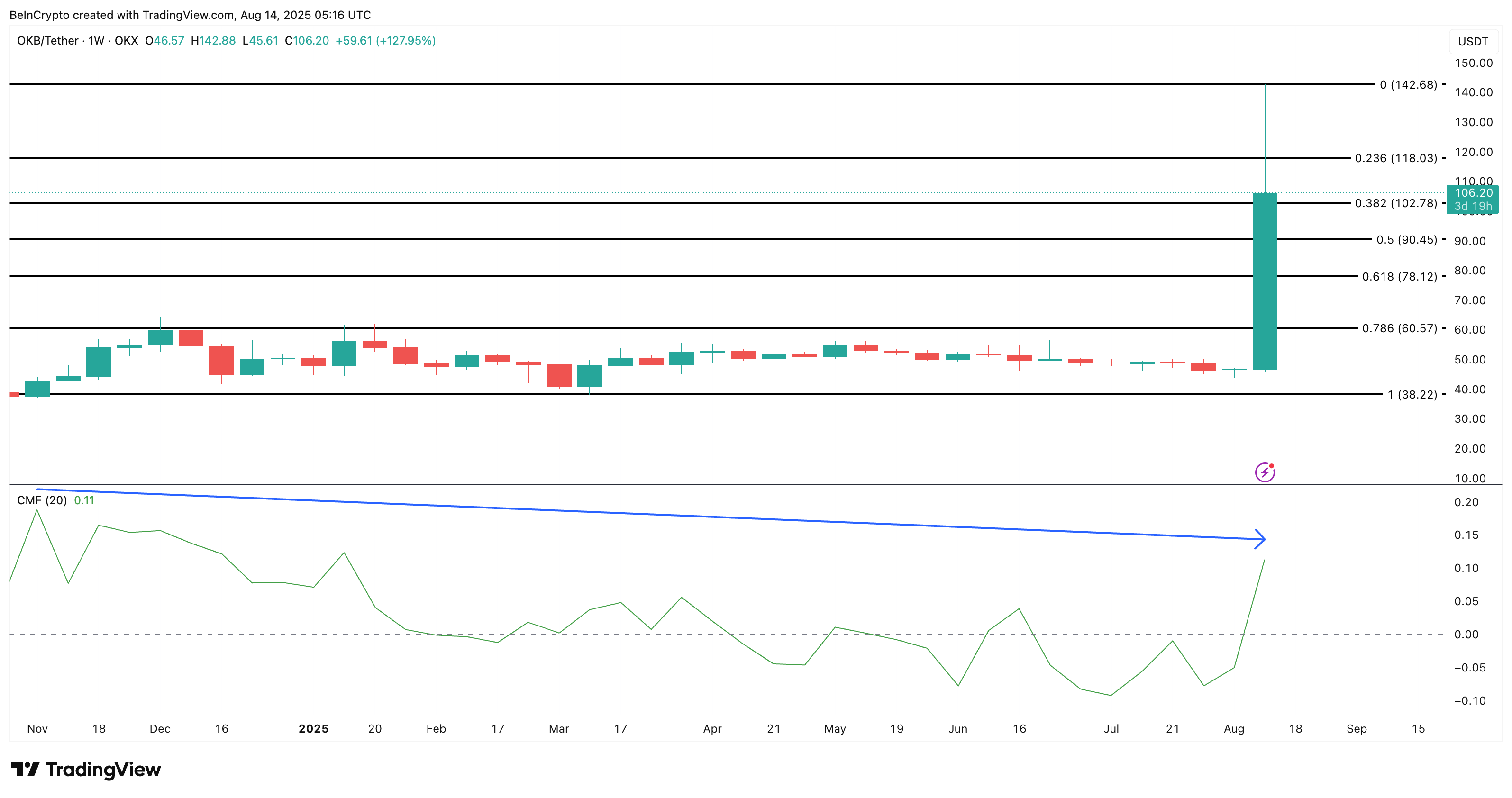 Biểu đồ giá OKB hàng tuần và CMF cho thấy sức mạnh cơ bản đang suy yếu