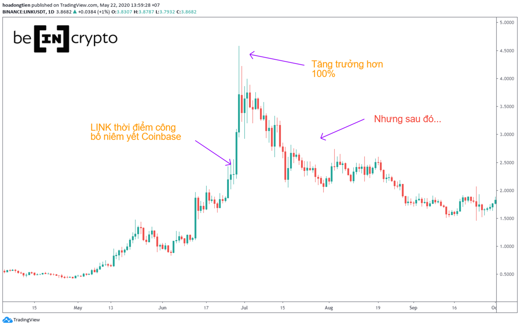 LINK trước và sau khi niêm yết Coinbase