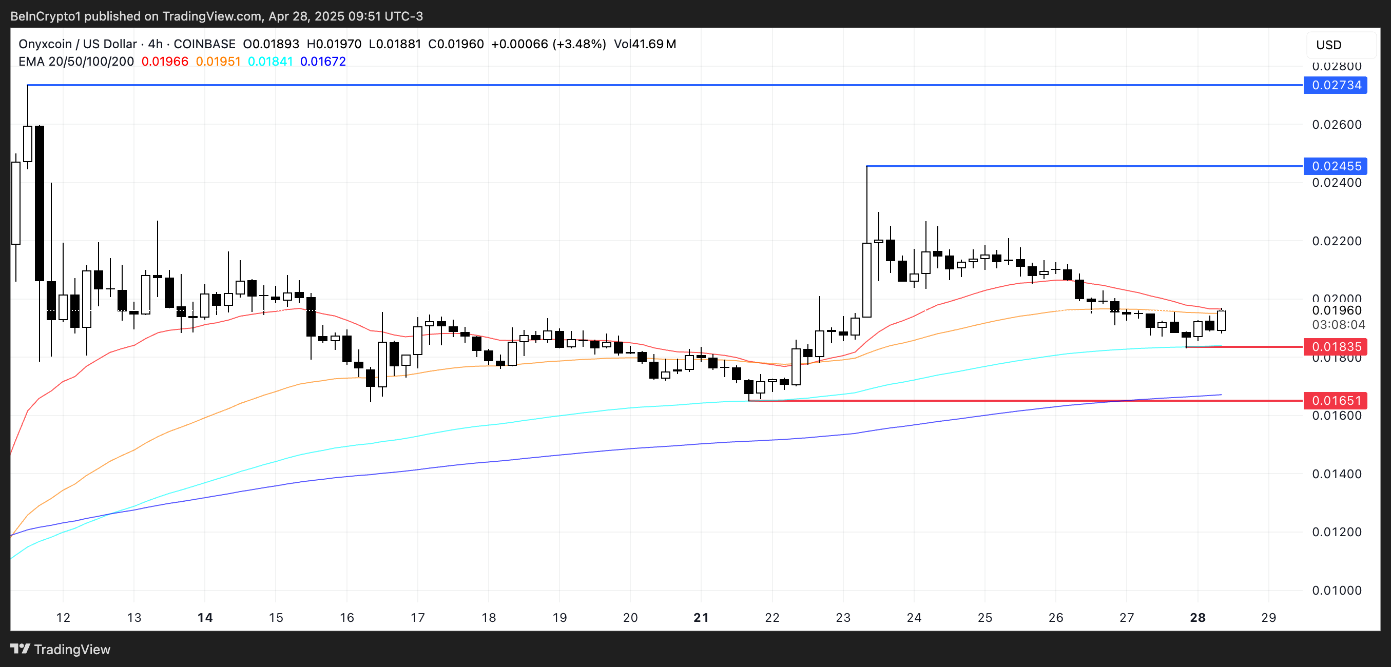 Trong vài ngày qua, Onyxcoin đã thành công trong việc kiểm tra và giữ vững vùng hỗ trợ quanh mức 0.018 USD, nhưng mức này vẫn còn mong manh.