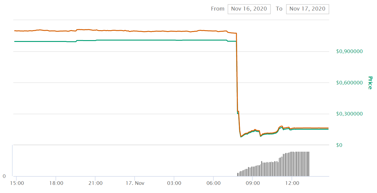 Như một hệ quả của Origin Dollar bị hack, OUSD đã lao dốc vào ngày hôm nay. Hiện tại, nó còn được giao dịch tại 0,15 USD, giảm đến 85% giá trị từ mức giá gần 1 USD trước đó.