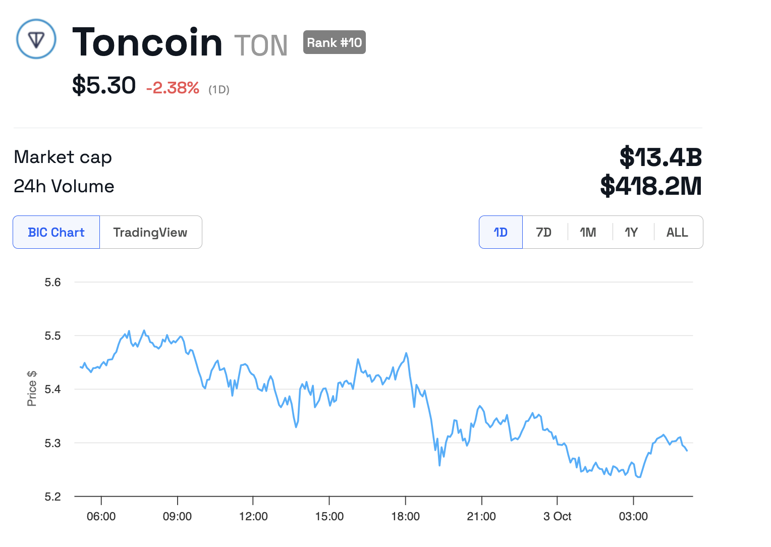 Tuy nhiên, giá của Toncoin vẫn tương đối ổn định.