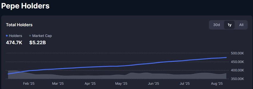 Thú vị là, các yếu tố cơ bản của PEPE đã mạnh lên trong năm 2024 dù giá của nó đã giảm một nửa kể từ tháng 01. Số lượng địa chỉ ví PEPE đã tăng 25% trong năm nay, cho thấy sự quan tâm bền vững của nhà đầu tư nhỏ lẻ ngay cả trong thời kỳ suy thoái.