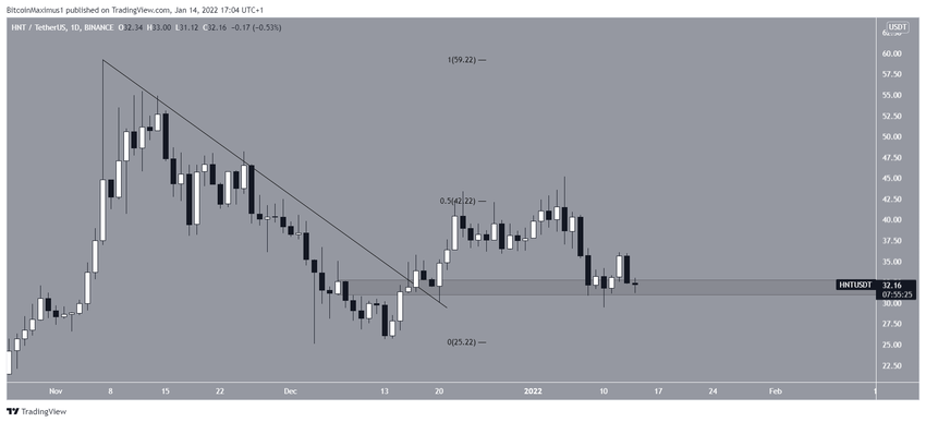 Nó đã đạt được mức cao nhất là 45.16 USD trước khi giảm xuống. Mức cao được tạo ra ngay tại mức kháng cự thoái lui Fibo 0.5. Sau đó, mã thông báo quay trở lại khu vực 32 USD để xác nhận đây là đường hỗ trợ. Hiện tại, giá HNT có thể sẽ bật lên khi chạm hỗ trợ mạnh.
