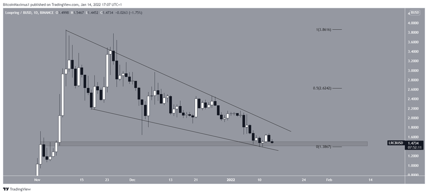 Sau khi LRC hoàn thành một thanh nến chìm và bật nhẹ từ đường hỗ trợ. Không lâu sau đó, mã thông báo đã bị trả lại ở đường hỗ trợ ngang 1.45 USD. Nếu LRC dịch chuyển tiến lên phát vỡ kháng cự giảm dần. Vùng kháng cự gần nhất sẽ là 2.62 USD, đồng thời là mức kháng cự thoái lui Fibo 0.5.