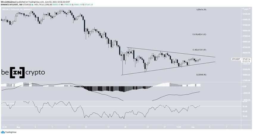 BTC đã được giao dịch bên trong một tam giác đối xứng ngắn hạn kể từ ngày 19 tháng 5. Mô hình tam giác này thường được coi là một sự hình thành trung lập.