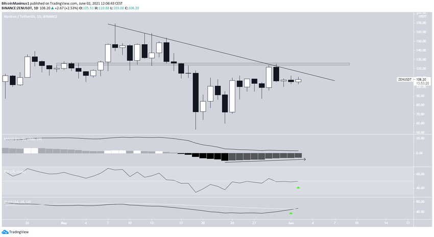 Hiện tại, ZEN đang trong quá trình thoát ra khỏi đường kháng cự. Nếu thành công, có khả năng ta sẽ tìm thấy một ngưỡng kháng cự khác ở mức 125 USD.