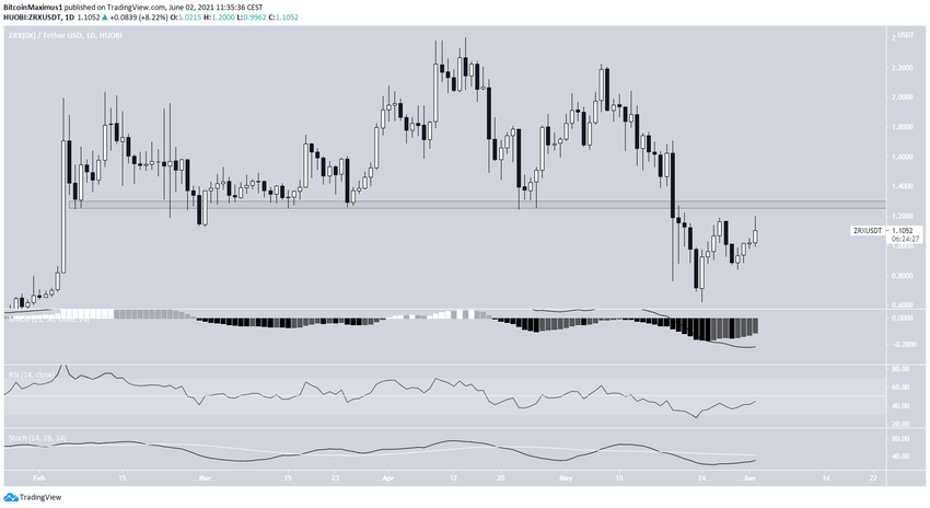 ZRX đã tăng kể từ khi phục hồi vào ngày 24 tháng 5. Cho đến nay, tiền điện tử này đã thành công trong việc tạo ra mức đáy cao hơn vào ngày 30 tháng 5.