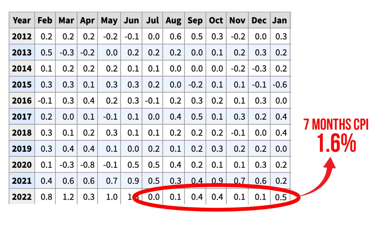 Nhìn qua thống kê về biến động tăng giảm CPI trong lịch sử, số liệu thực tế vẫn chưa đạt mục tiêu lạm phát 2% của FED.