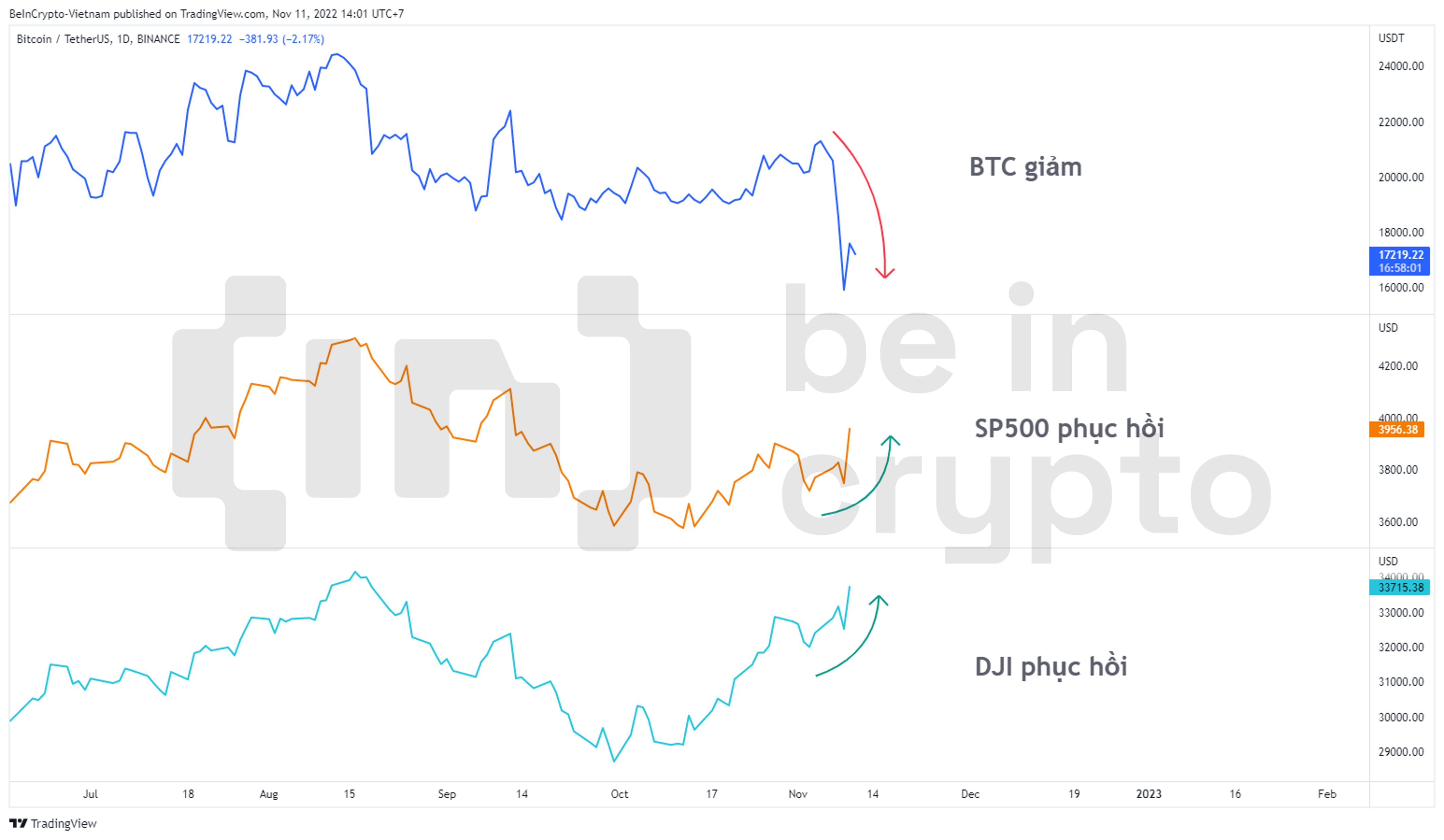 Cả S&P 500 và DJI đều có mức phục hồi rất ấn tượng trong tháng 11. Nhưng tháng 11 có lẽ lại là tháng “đáng quên” nhất đối với nhà đầu tư Bitcoin.