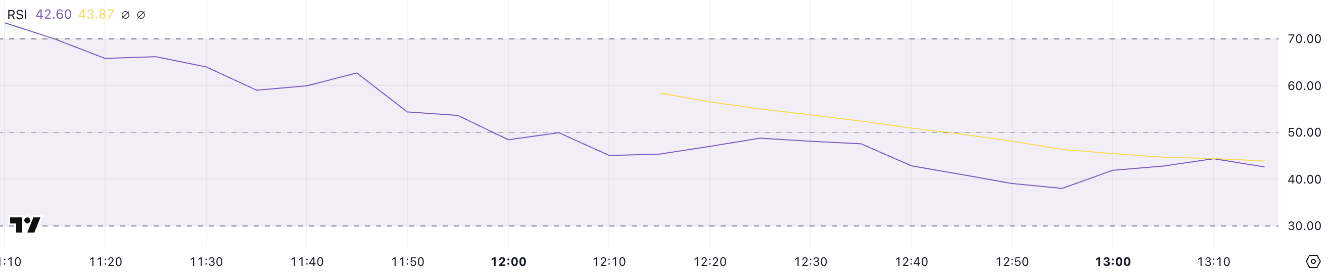 Tuy nhiên, nếu RSI ổn định hoặc đảo chiều gần mức này, có thể cho thấy sự hợp nhất trước khi có động thái tiếp theo. Sự giảm tiếp tục về mức 30 sẽ báo hiệu sự yếu kém gia tăng, trong khi sự phục hồi từ vùng này có thể cho thấy người mua đang can thiệp để hỗ trợ khả năng phục hồi.