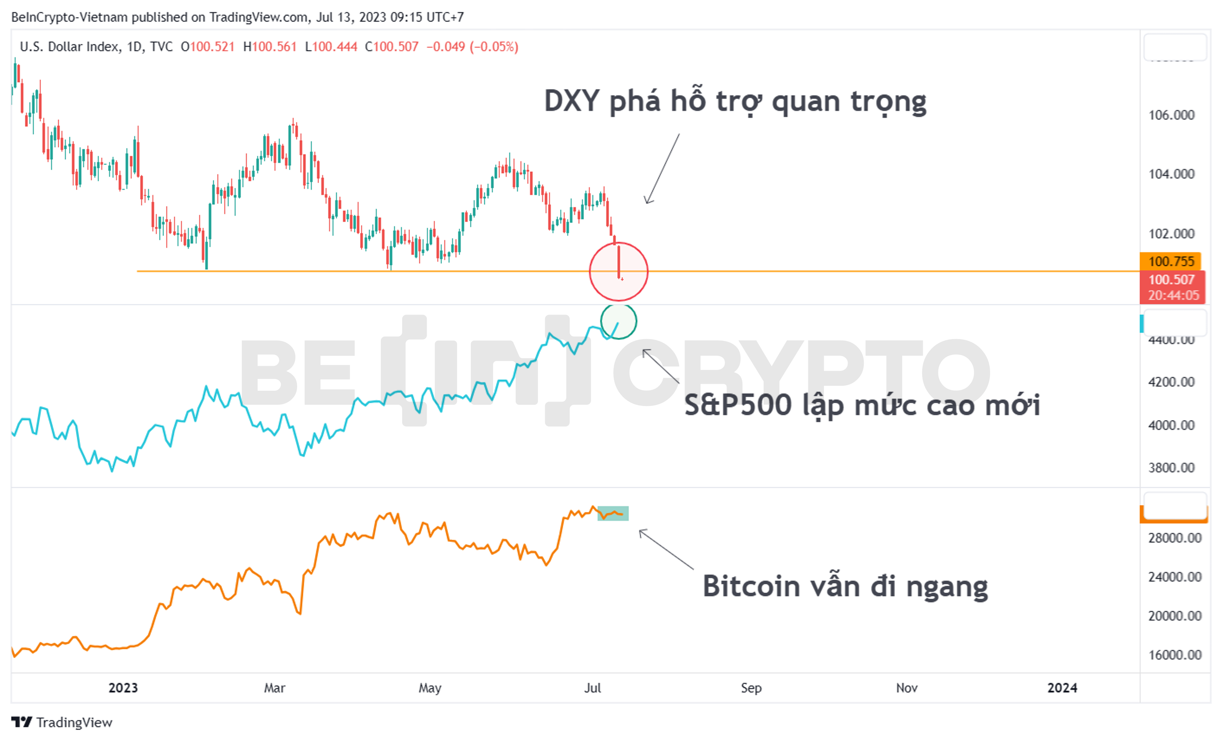 DXY phá hỗ trợ mạnh nhưng BTC vẫn không đột phá