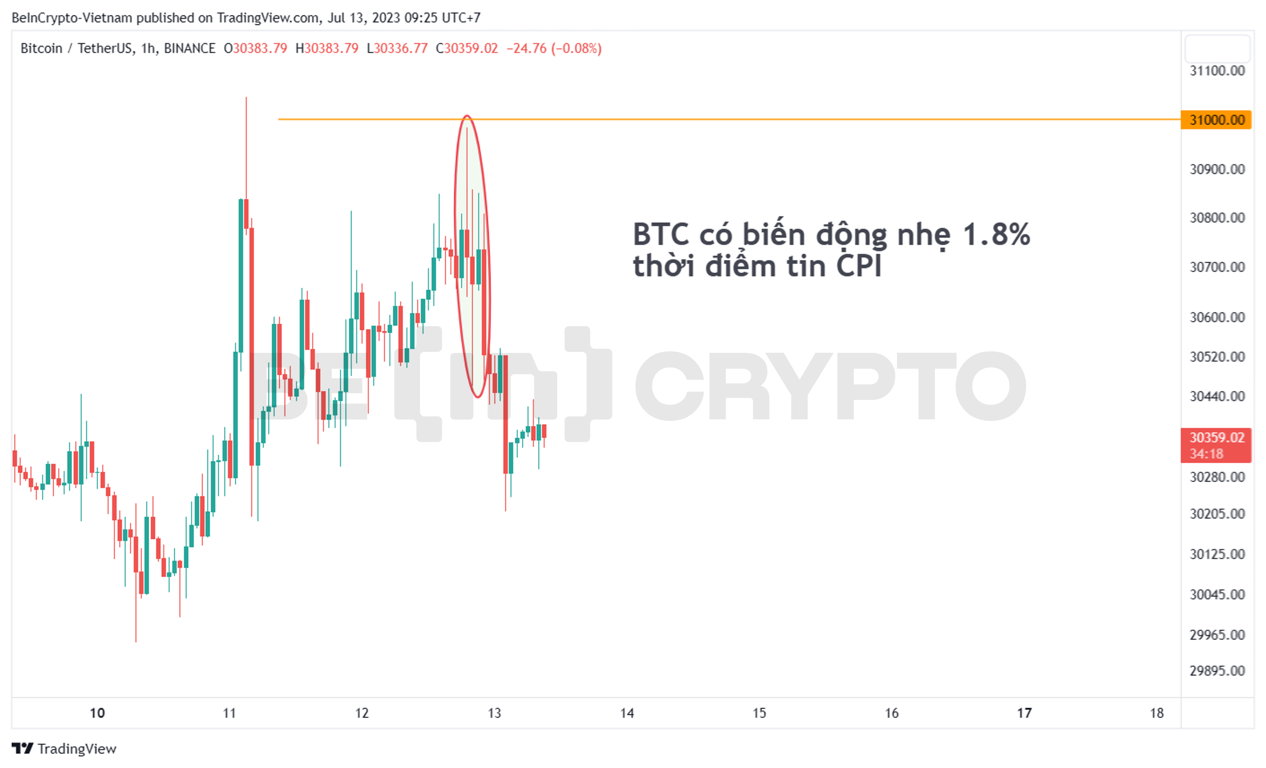 Hôm qua, tin tức về CPI Hoa Kỳ thấp hơn dự báo đã khiến cho giá Vàng bật tăng và cổ phiếu (S&P500) lập mức cao mới năm 2023. Nhưng Bitcoin (BTC) vốn được cho là tương quan chặt chẽ với các yếu tố vĩ mô trong hai năm gần đây thì lại không “hề hấn” gì.