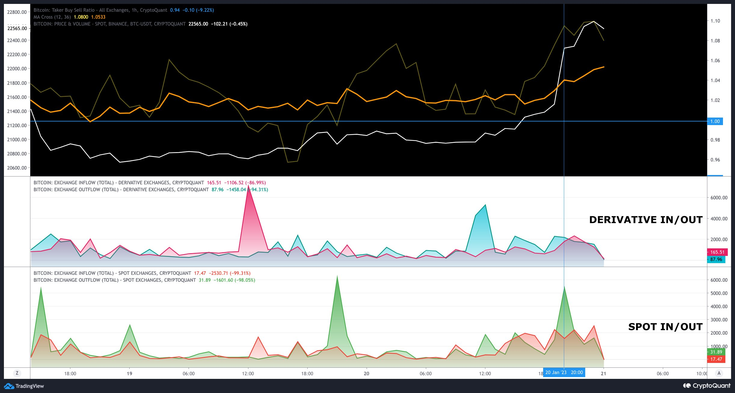 - Lượng Spot out (ra khỏi sàn Spot, đánh dấu bằng màu xanh lá cây) đã tăng đột biến khi giá phá khỏi kháng cự. Dữ liệu này được lý giải như hành vi mua và tích trữ của cá mập.