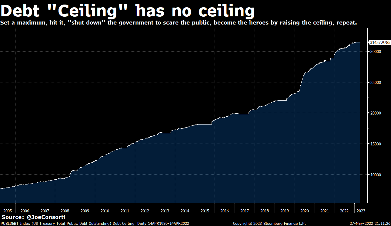 Nhìn vào biểu đồ biến động nợ trần của Mỹ trong gần 20 năm qua có thể thấy một đặc điểm là nó không hề có “trần”. Hiện tại, nợ công của Hoa Kỳ đã vượt 31 nghìn tỷ USD. Những thông tin mà các lãnh đạo vừa đưa ra đã xoa dịu nỗi lo và giải tỏa những áp lực các nhà đầu tư một tháng nay.