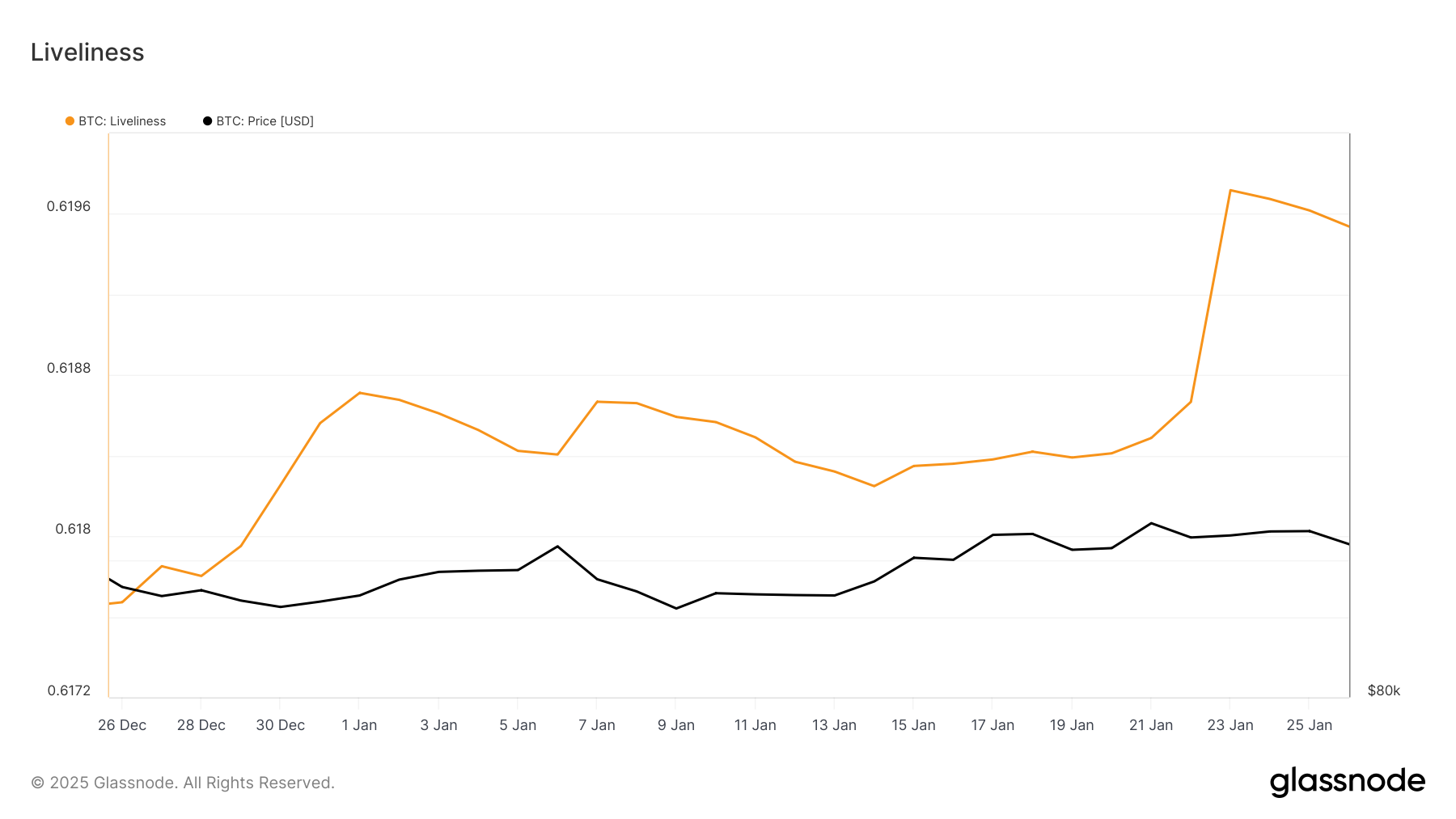 Dữ liệu gần đây cho thấy sự gia tăng mạnh mẽ trong chỉ số Liveliness của Bitcoin, một chỉ số theo dõi hoạt động của các nhà đầu tư dài hạn. Sự gia tăng này cho thấy nhiều LTH đã bán tài sản của họ trong vài ngày qua. Điều này được hỗ trợ bởi sự thay đổi trong số dư của LTH và sự gia tăng trong tổng số Coin Days Destroyed, cho thấy sự di chuyển đáng kể của BTC đã từng không hoạt động.