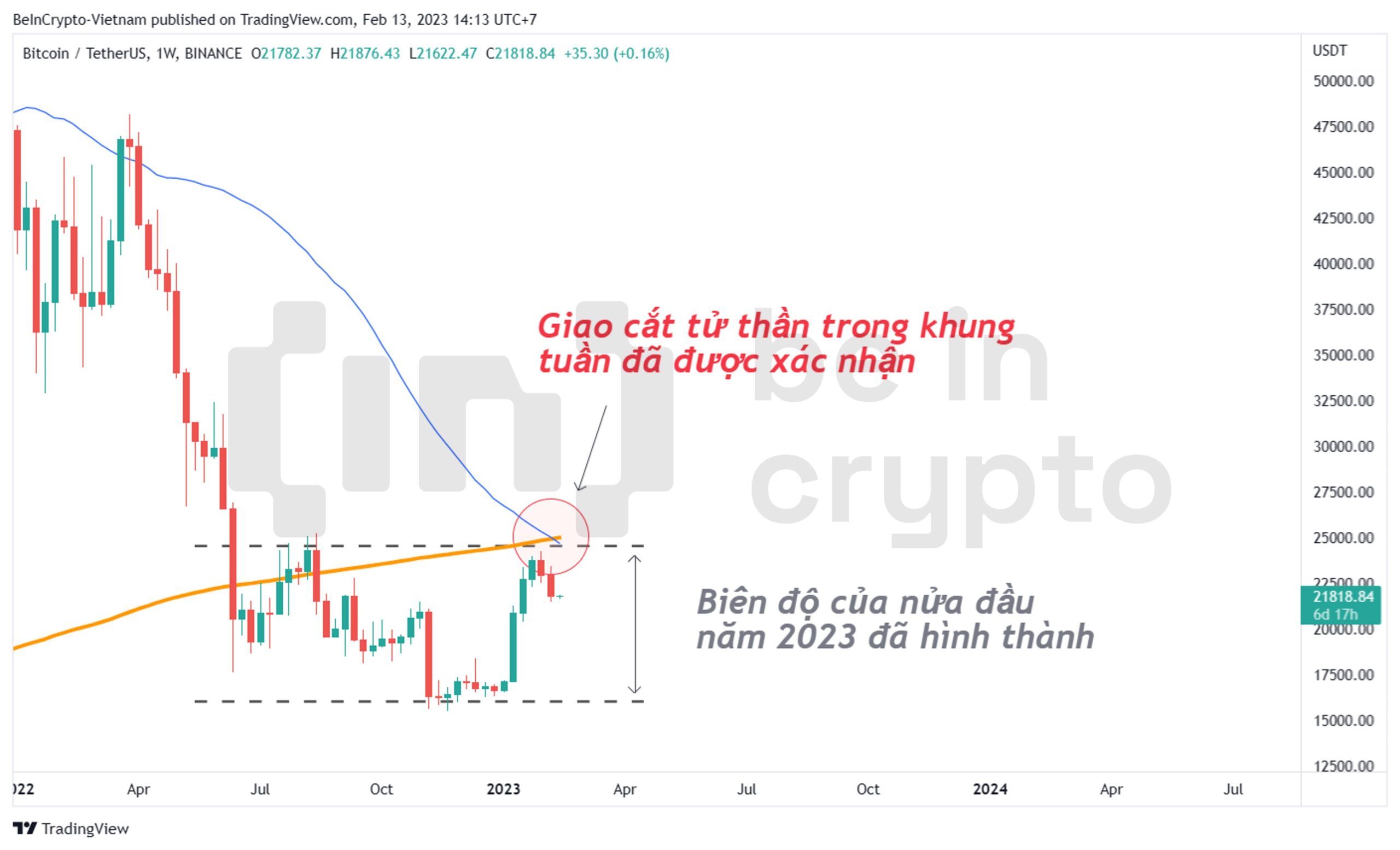 Như đề cập trong phân tích giá Bitcoin trước đó, một khi tín hiệu giao cắt xấu khung tuần được xác nhận, nó sẽ ảnh hưởng đến những phân tích xa hơn năm 2023. Trước mắt:
