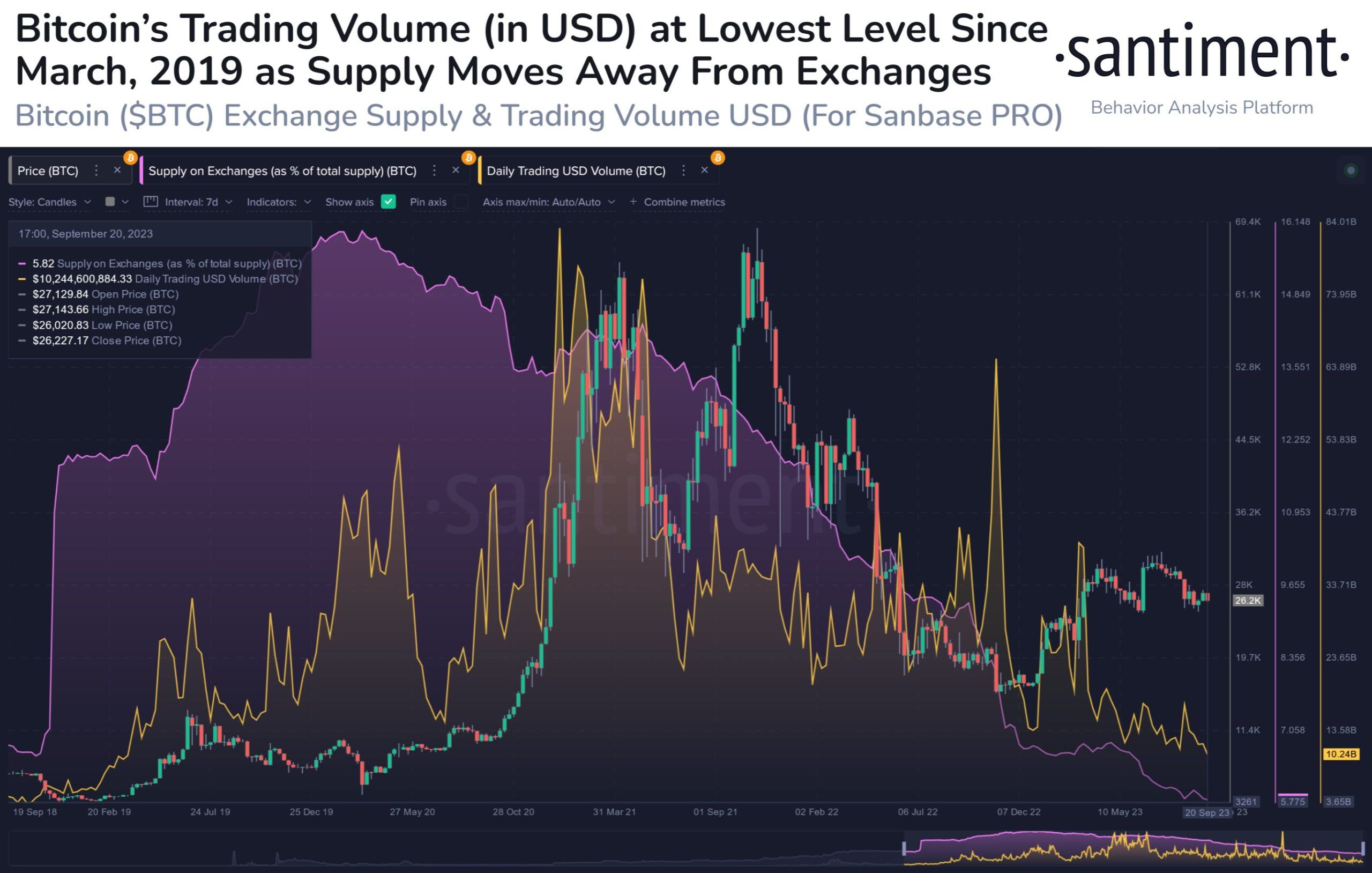 Giá Bitcoin (BTC) vẫn đang duy trì trên 26,000 USD và chưa có một đột phá nào mới. Tháng 9 tiếp tục ghi nhận những bất thường và những kỷ lục mới về khối lượng giao dịch của Bitcoin. Điều này có thể gây nên những hệ lụy ra sao?