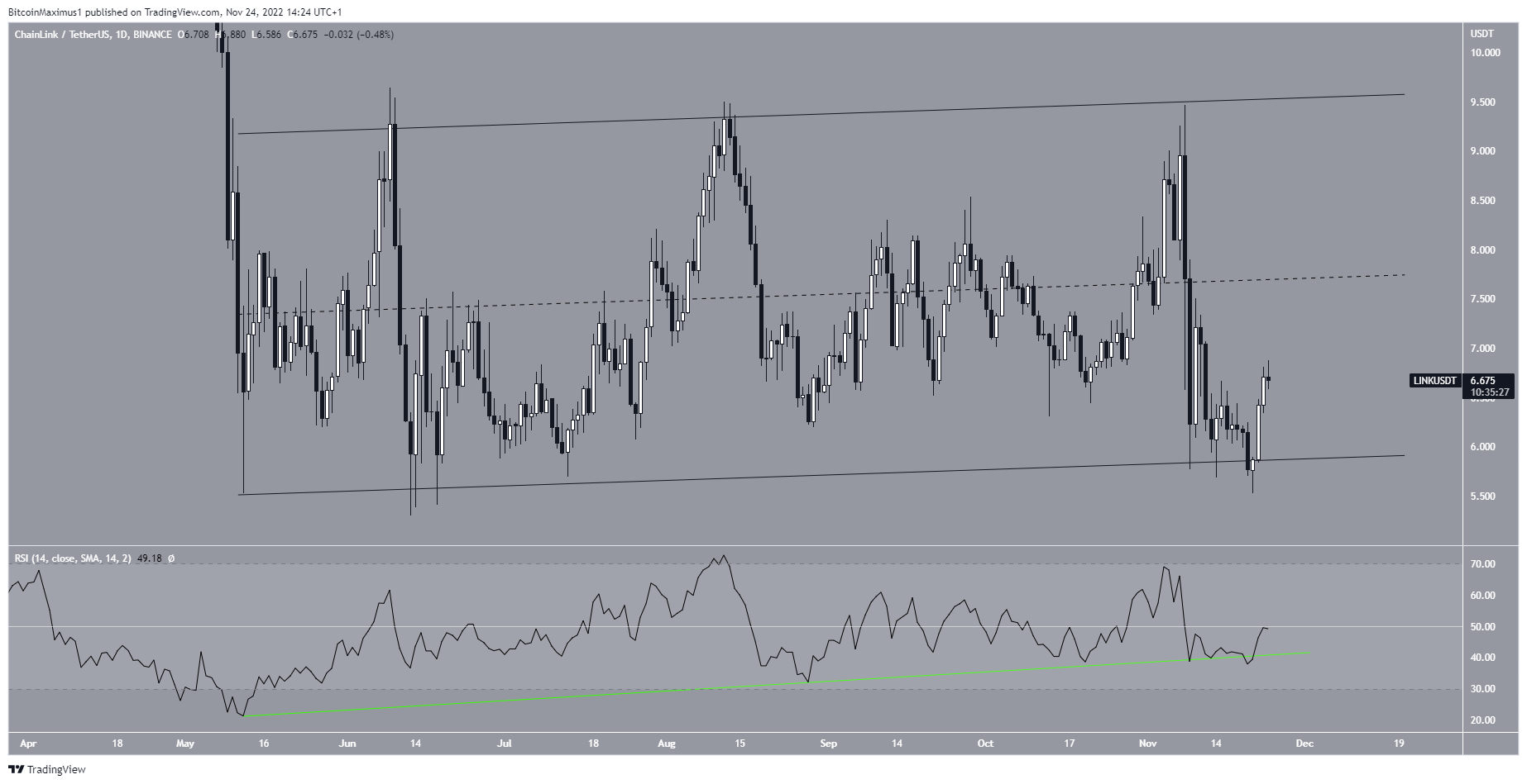 Biến động giá hàng ngày cho thấy LINK đã được giao dịch bên trong một kênh song song tăng dần kể từ đầu tháng 5. Các kênh như vậy thường chứa các chuyển động điều chỉnh. Điều này có nghĩa là giá LINK rất có thể sẽ giảm xuống từ kênh này. Thực tế là giá Chainlink đang giao dịch ở phần dưới của kênh và điều này càng hỗ trợ khả năng giảm mà chúng ta nhắc đến ở trên xảy ra.