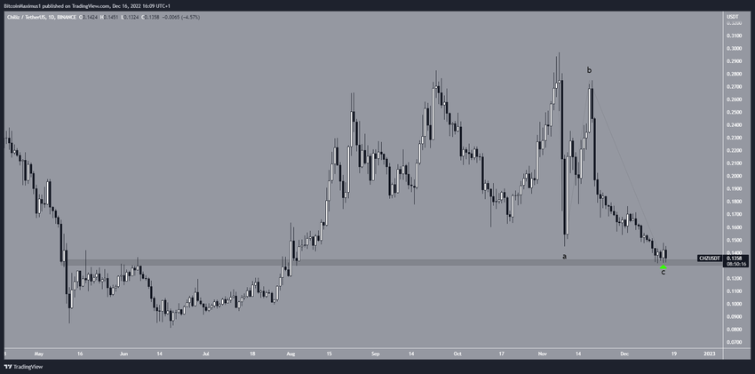 Nếu CHZ đã hoàn tất sóng C, giá CHZ sẽ sớm bắt đầu đảo chiều tăng. Mặt khác, mức đóng nến hàng ngày dưới khu vực 0.135 USD sẽ làm mất hiệu lực giả thuyết tăng này. Tại thời điểm BeInCrypto viết bài này, giá CHZ hiện đang ở 0.12 USD. Có vẻ như khả năng đảo chiều của CHZ sẽ khó xảy ra.