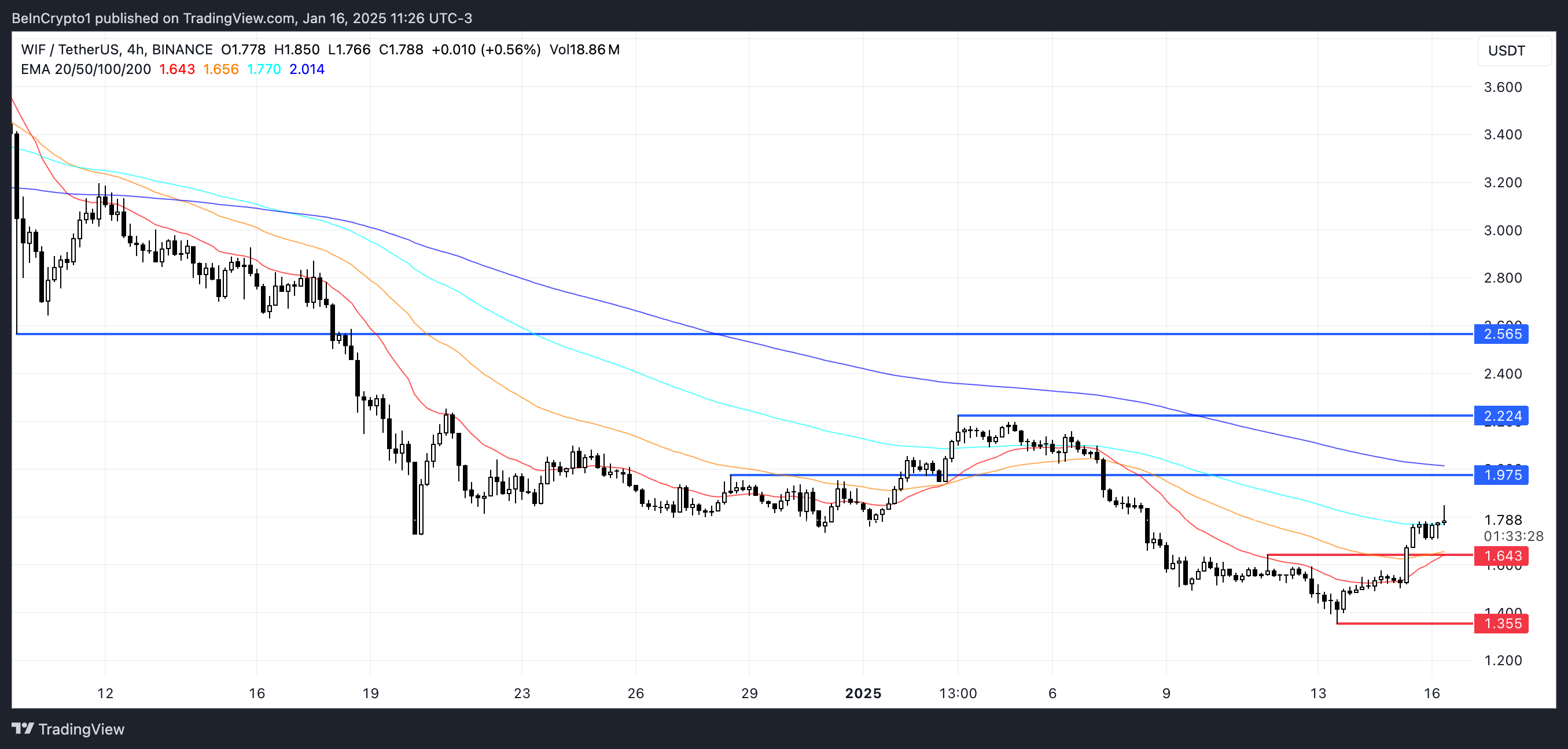 Tuy nhiên, nếu động lực tăng giá giảm và xu hướng đảo chiều, giá WIF có thể kiểm tra mức hỗ trợ 1.64 USD. Một sự phá vỡ dưới mức quan trọng này có thể dẫn đến sự giảm sâu hơn, với 1.35 USD là vùng hỗ trợ chính tiếp theo.