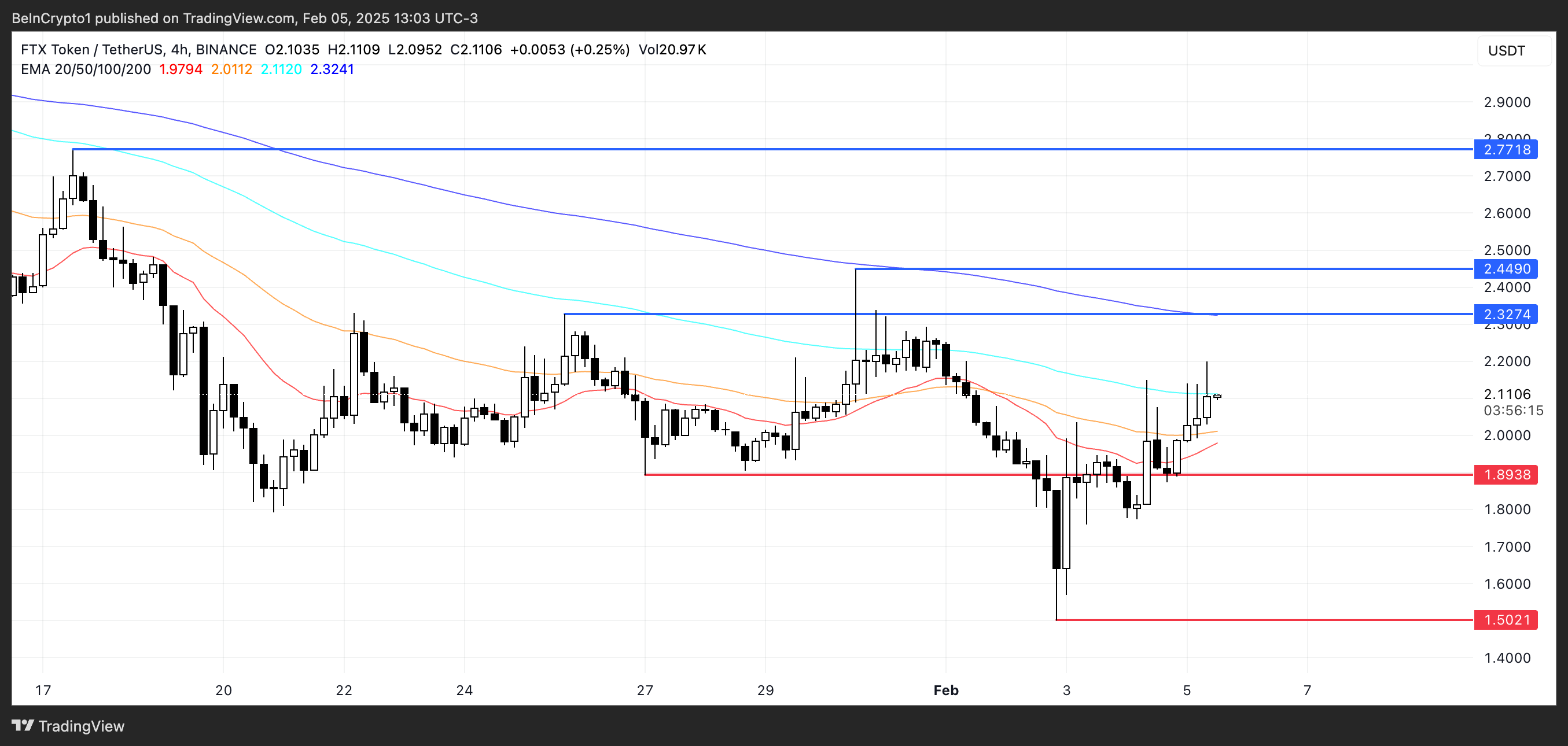 Giá FTX token (FTT) tăng sau tin tức rằng sàn giao dịch sẽ bắt đầu thanh toán cho các chủ nợ ở Bahamas vào ngày 18/02. Dù có sự phát triển tích cực này, FTT vẫn đang cố gắng duy trì mức trên 2 USD khi các chỉ báo kỹ thuật cho thấy tín hiệu hỗn hợp.