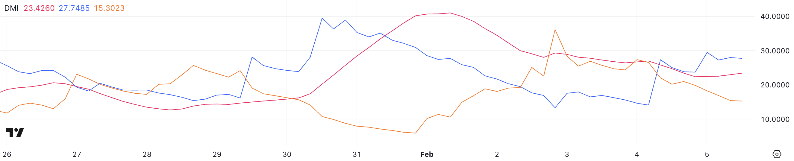 ADX là một phần quan trọng của Directional Movement Index (DMI) theo dõi sức mạnh xu hướng. Giá trị trên 25 chỉ ra xu hướng mạnh, và dưới 20 cho thấy hành động giá yếu hoặc không quyết đoán.