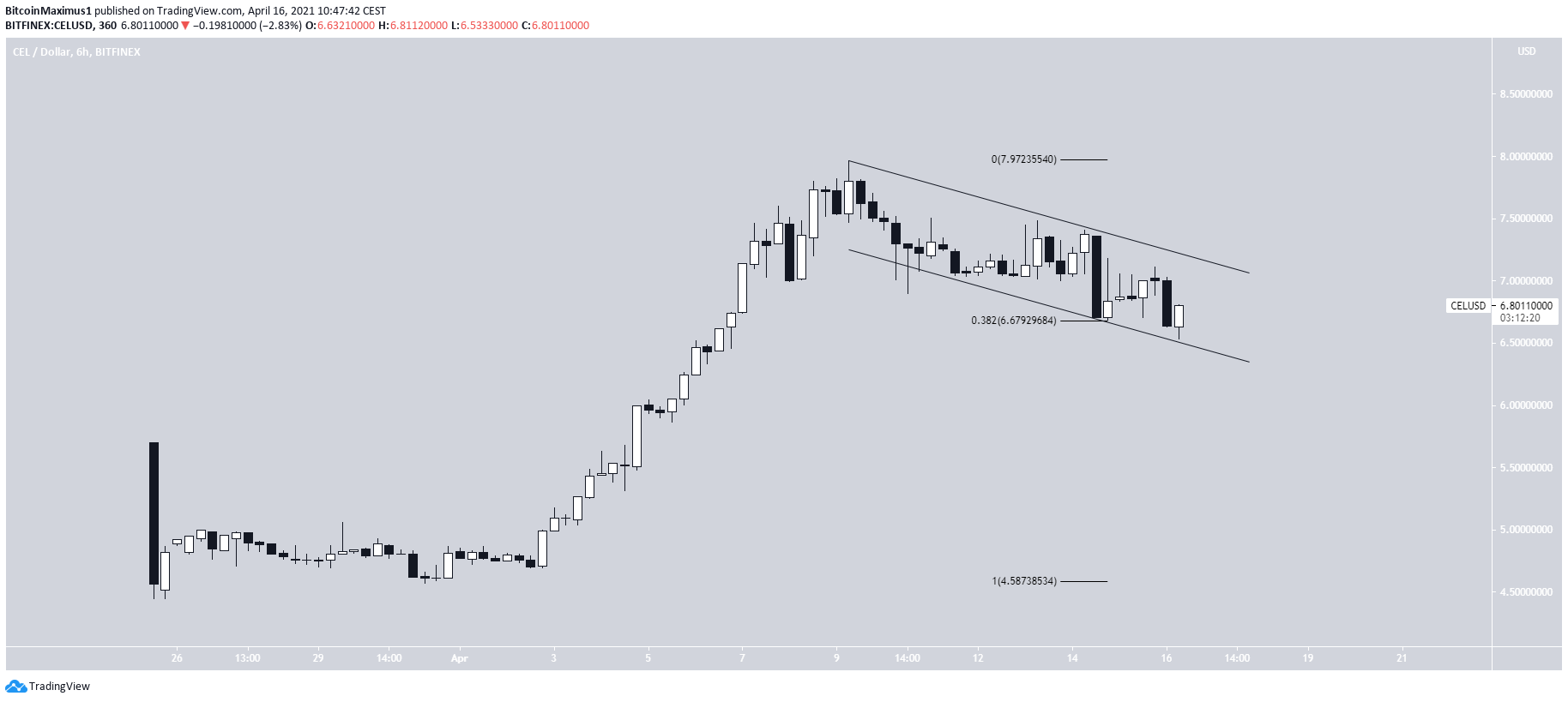 Mức giảm của CEL nằm trong một kênh song song. Có khả năng đây là một chuyển động điều chỉnh. Tại thời điểm viết bài, CEL đang giao dịch ngay tại mức hỗ trợ thoái lui 0,382 Fib và đường hỗ trợ của kênh này.