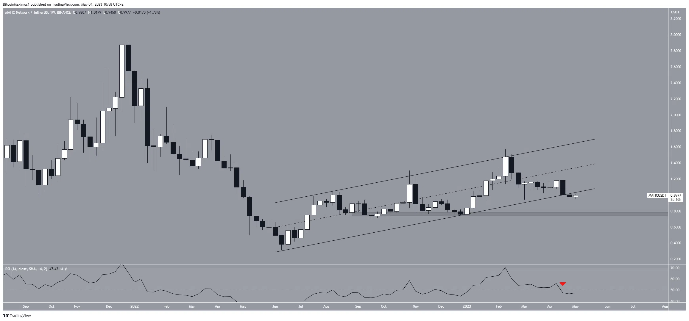SponsoredTrong trường hợp của MATIC, chỉ báo RSI đã phá vỡ đường xu hướng của nó và giảm xuống dưới 50, cho thấy xu hướng là giảm. Việc chỉ báo RSI giảm trùng với việc giảm giá làm tăng khả năng xảy ra sự cố.