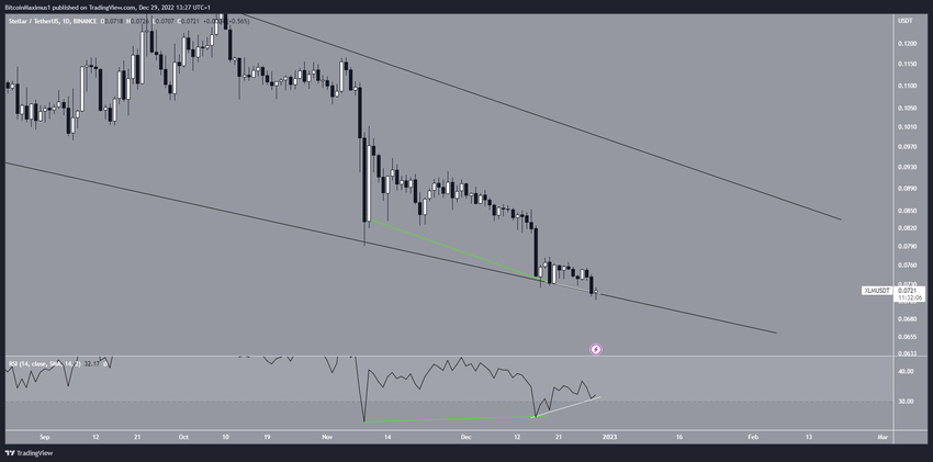 Giá Stellar đã di chuyển đi xuống bên trong một nêm giảm dần kể từ khi đạt mức cao 0.798 USD vào tháng 5/2021. Nêm giảm dần được coi là một mô hình tăng giá, có nghĩa là hầu hết thời gian nó dẫn đến sự đột phá. Tuy nhiên, không có dấu hiệu tăng giá nào khác ngoài sự hiện diện của nêm giảm dần.